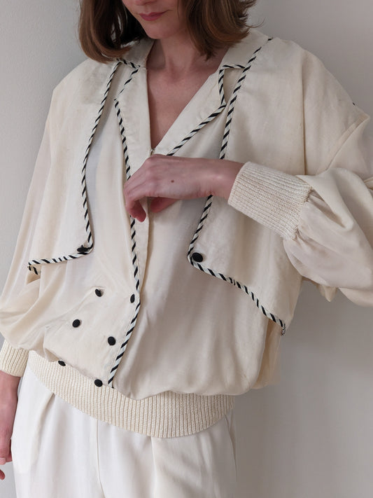 Beautiful Vintage Navy & Ivory Trimmed Cardigan Set
