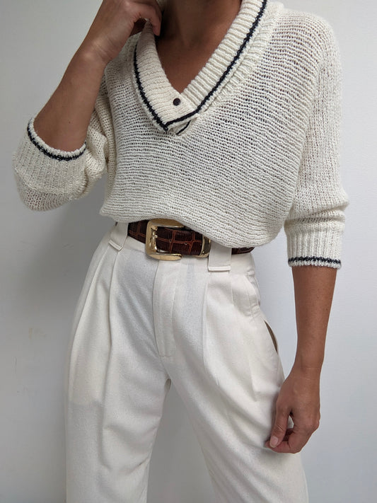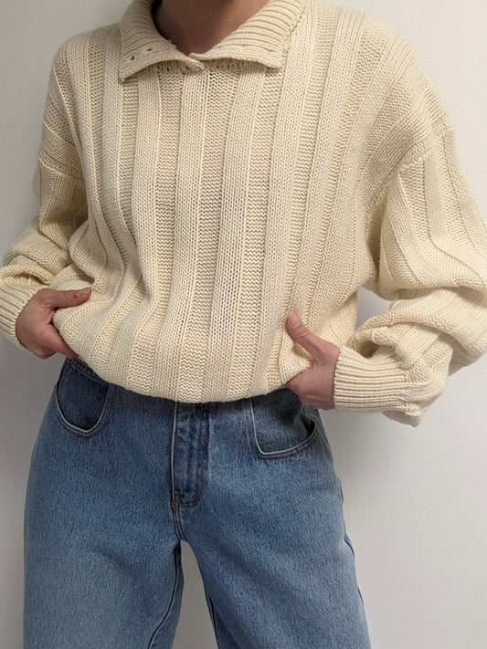 Vintage Cream Collared Knit Sweater