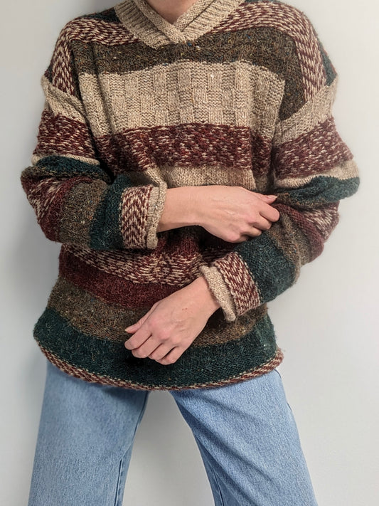 Vintage Autumn Striped Wool Sweater