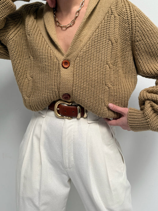 Vintage Toffee Shawl Collar Cardigan