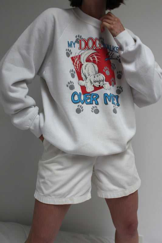 Fun Vintage "My Dog Walks All Over Me" Raglan Sweatshirt
