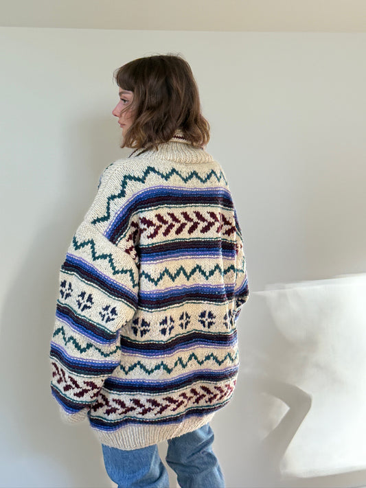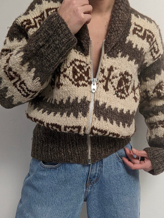 Incredible Vintage Cowichan Patterned Wool Cardigan