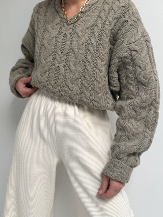 Vintage Taupe Cable Knit Wool Sweater