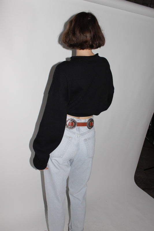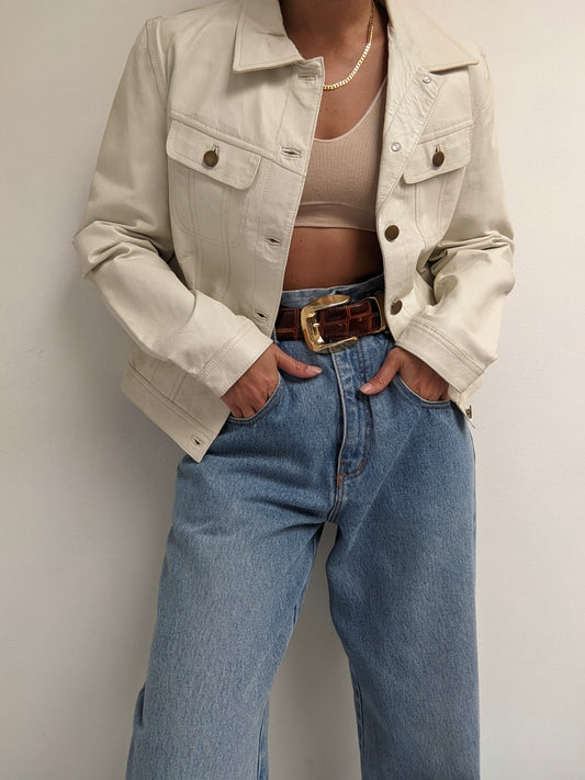 Bold Vintage Cropped Black Leather Bomber
