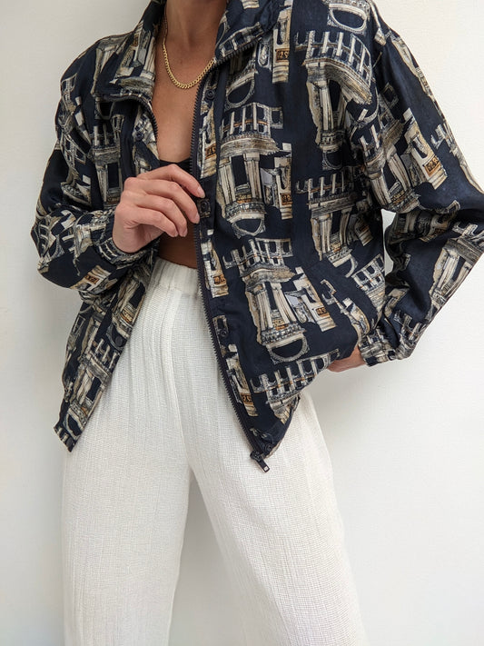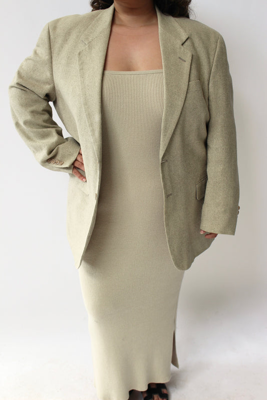 Vintage Printed Wool & Leather Blazer