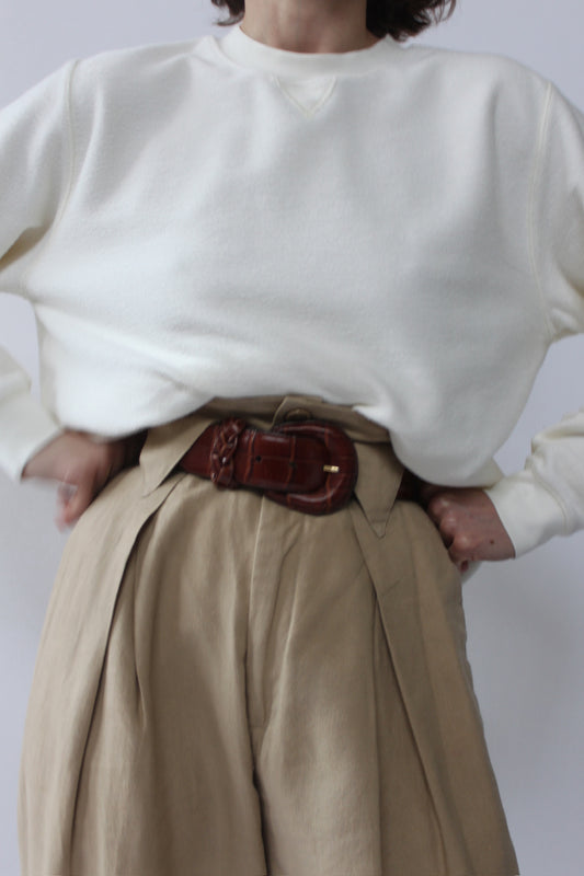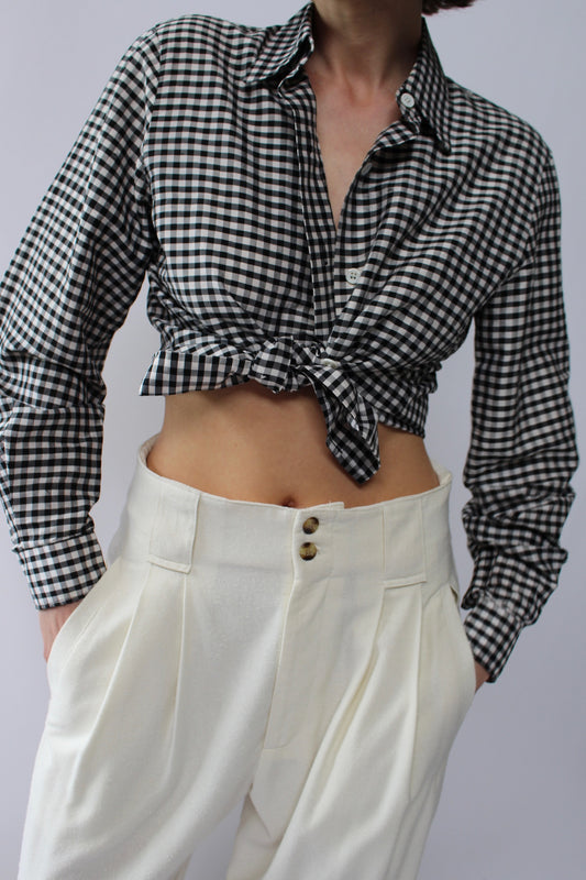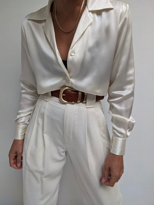 Vintage Buttercream Pleated Tie Blouse