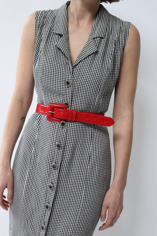 Fun Vintage Embellished Holiday Red Leather Belt