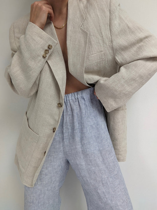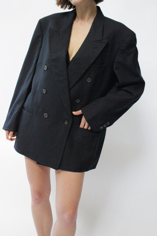Vintage Double Breasted & Belted Woven Wool Jacket