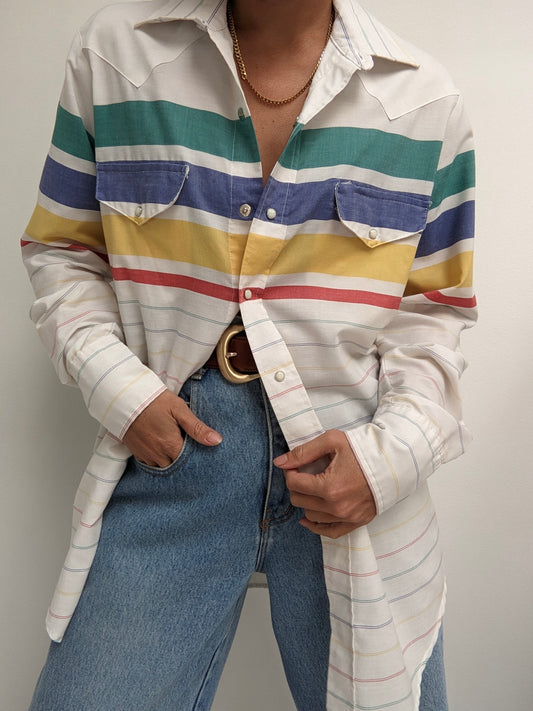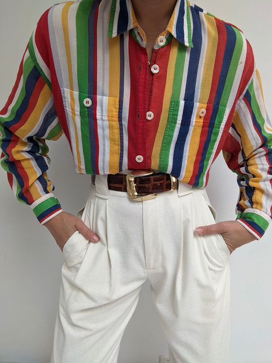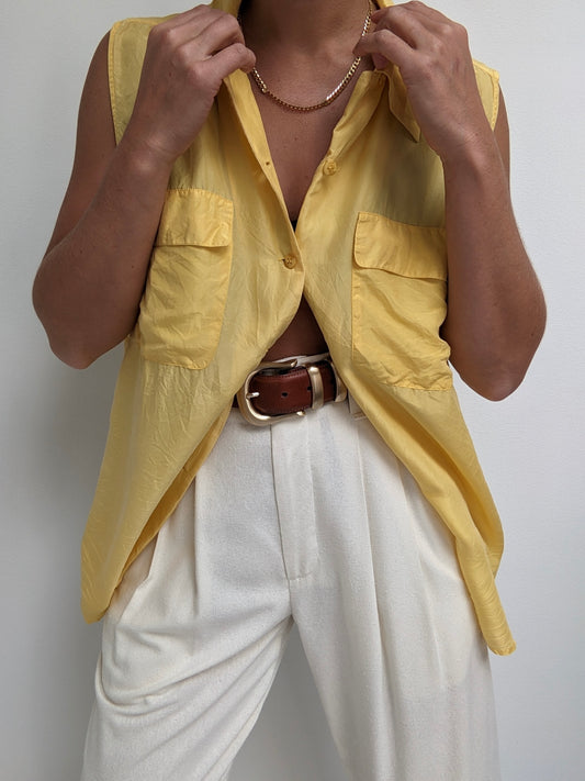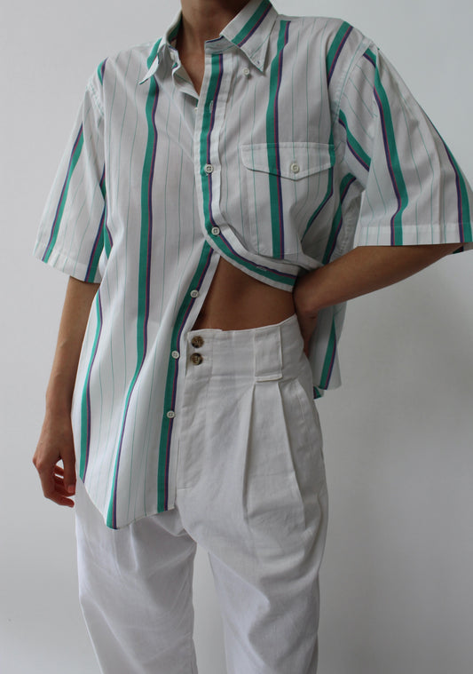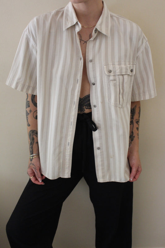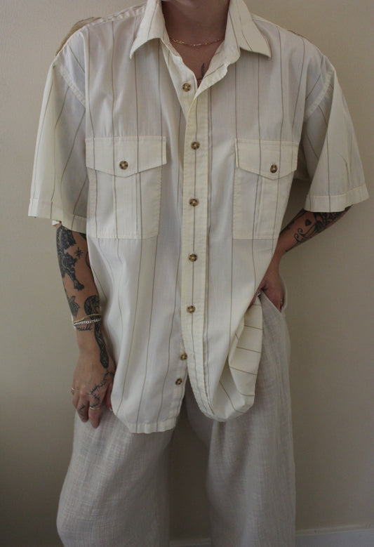 Vintage Pale Lemon Striped Short Sleeve Shirt