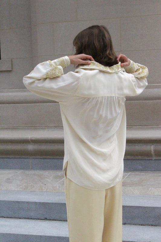 Incredible Vintage DVF Embroidered Silk Balloon Sleeve Blouse