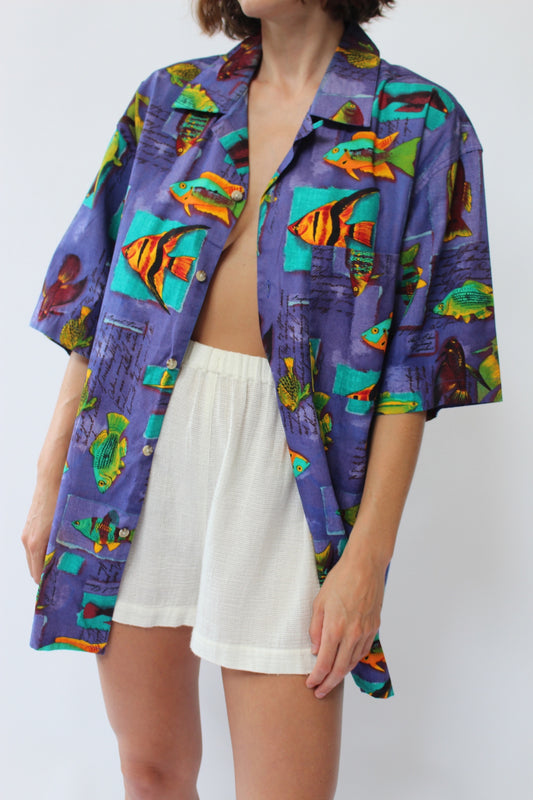 Vintage Tropical Fish Illustrated Short Sleeve Shirt