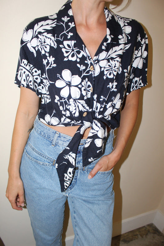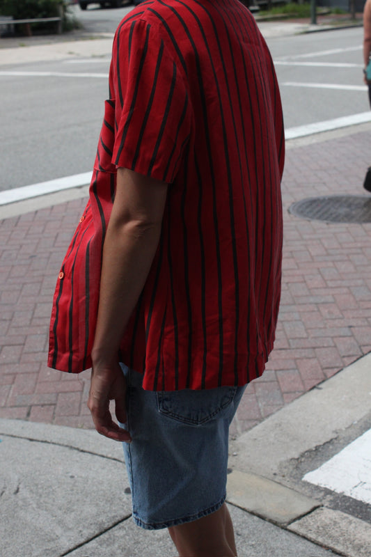 Favorite Vintage Navy Striped Short Sleeve Button Up