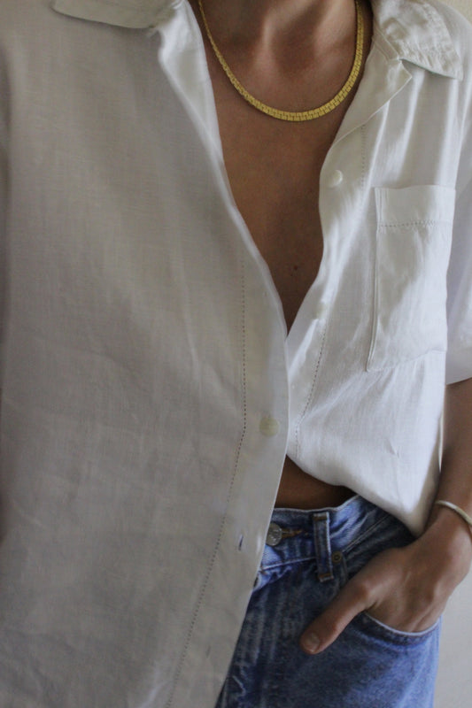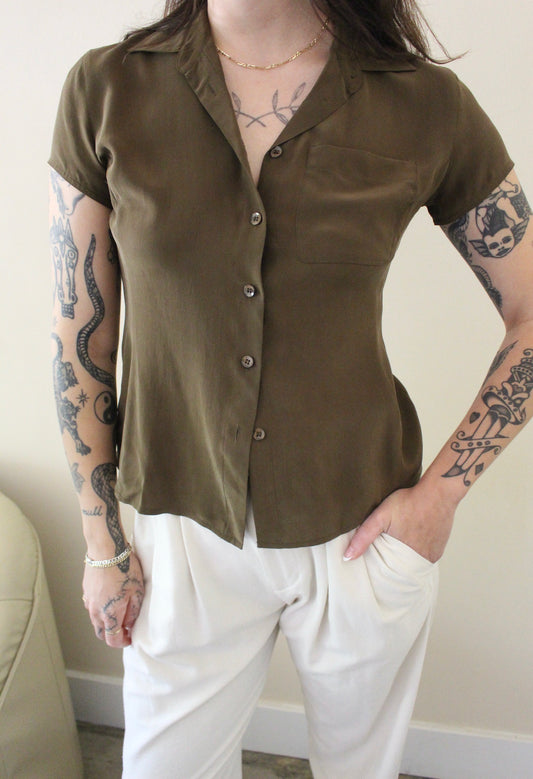 Vintage Pure Linen Safari Short Sleeve Blouse