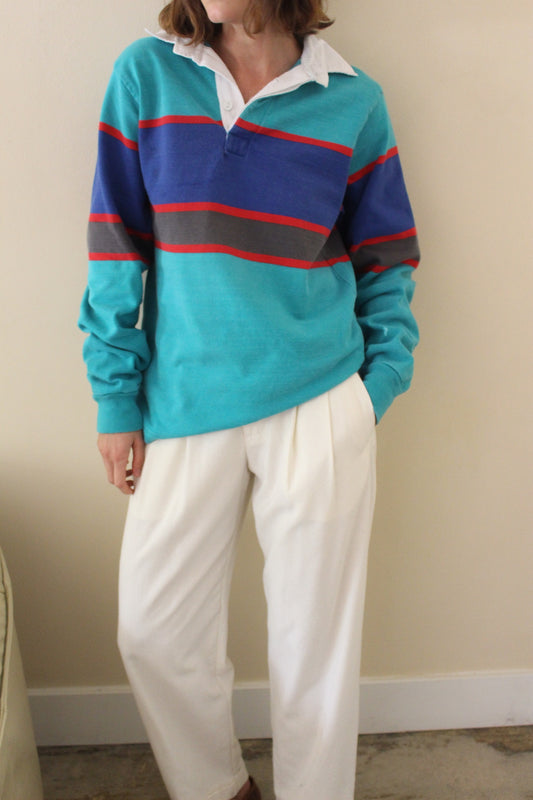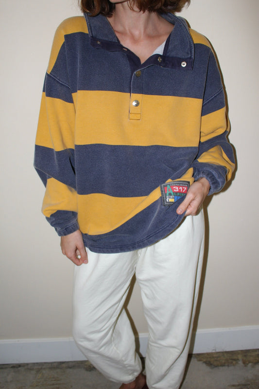 Vintage Faded Navy & Gold Henley Sweatshirt