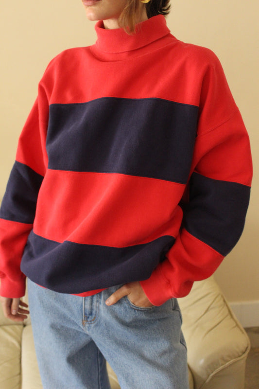Vintage Navy & Red Striped Turtleneck Sweatshirt