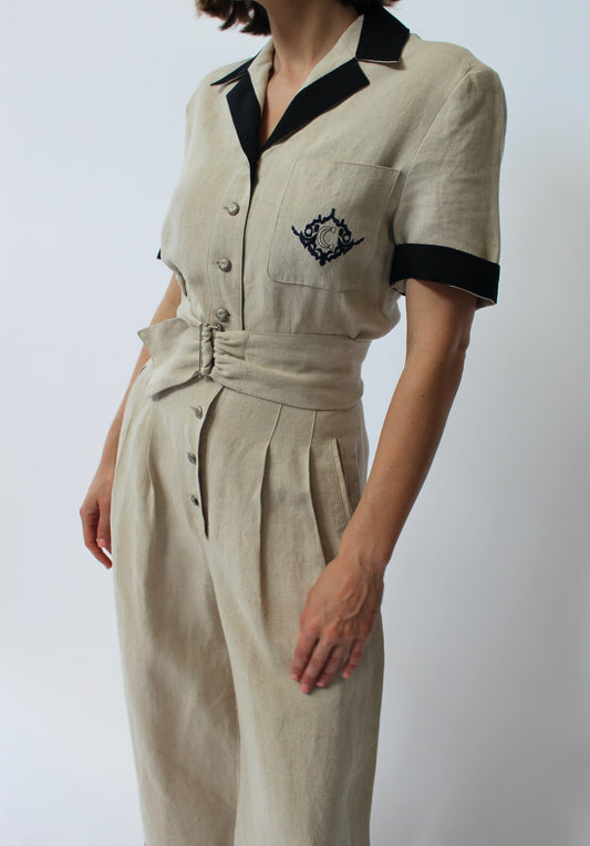 Favorite Vintage Linen Wide Leg Belted Jumpsuit