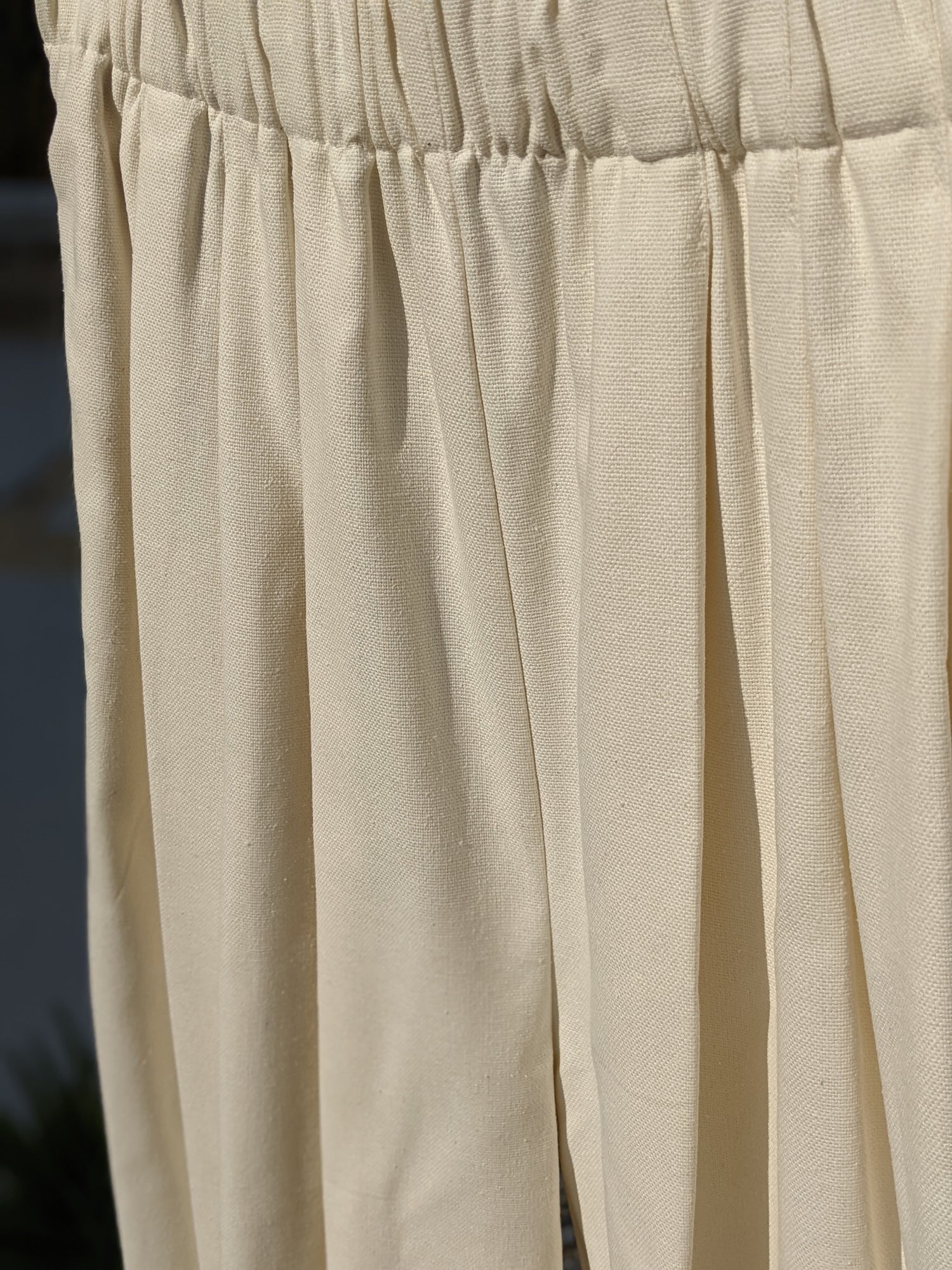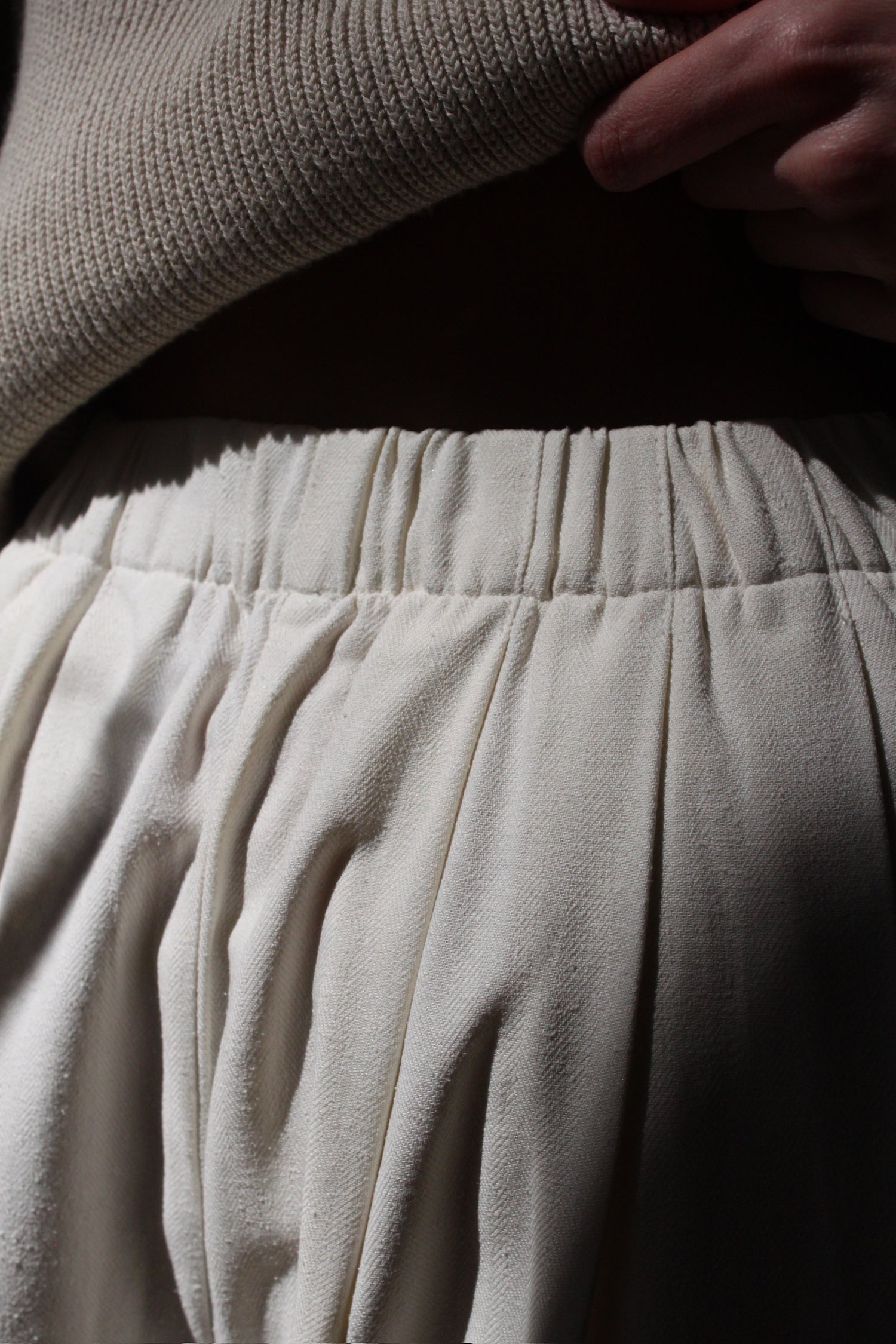 The Lena Pant is a bestselling, essential wardrobe piece for a reason. Inspired by our favorite vintage silhouettes and reinterpreted for the modern wardrobe, the Lena Pant features a comfortable elastic waist, handsome front pleats, side pockets, and a cropped fit leg. Available in multiple fabrications - follow along below for a comparison on what makes each fabric unique.
