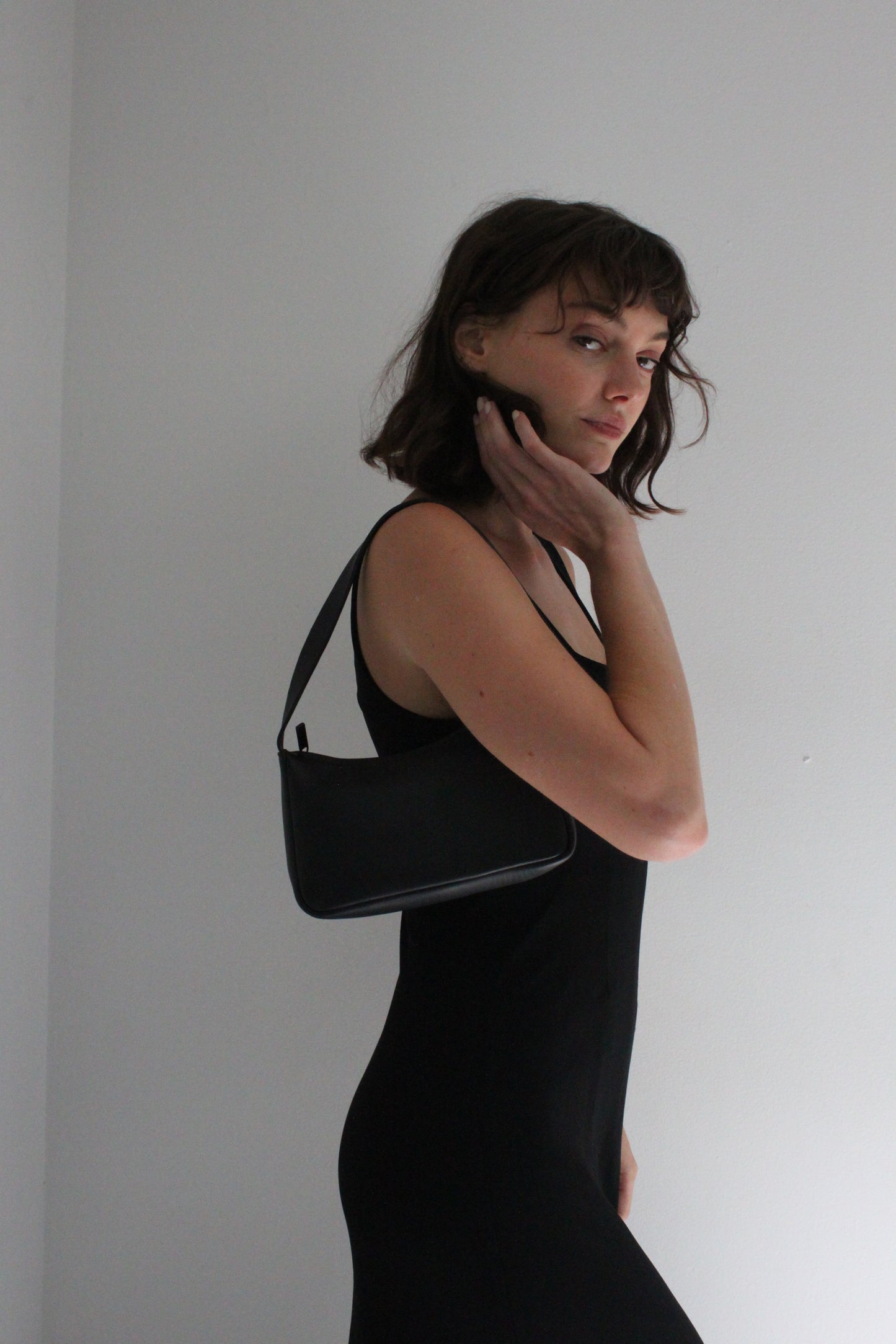 Expertly crafted with a petite silhouette, the 90s Petit Shoulder Bag is the perfect solution for seamlessly transitioning from day to night. Boasting a sleek leather body, structured design, zip closure, and luxurious suede leather lining, this bag is ideal for carrying all your essentials. It is a must-have accessory for completing any outfit.