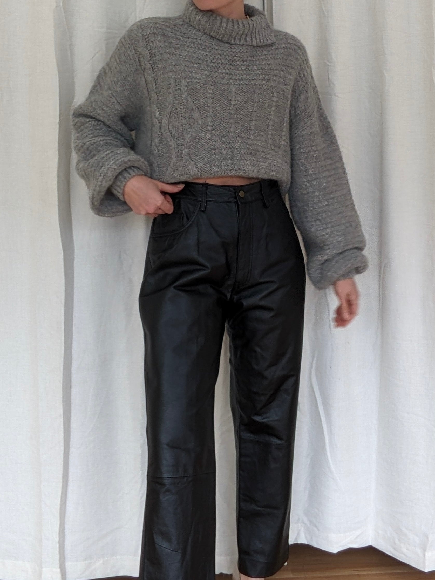 Amazing vintage pants in a smooth, caviar black leather! Pants have a high-rise fit with belt loops, a 5-pocket structure and a lined interior for comfortable wear.