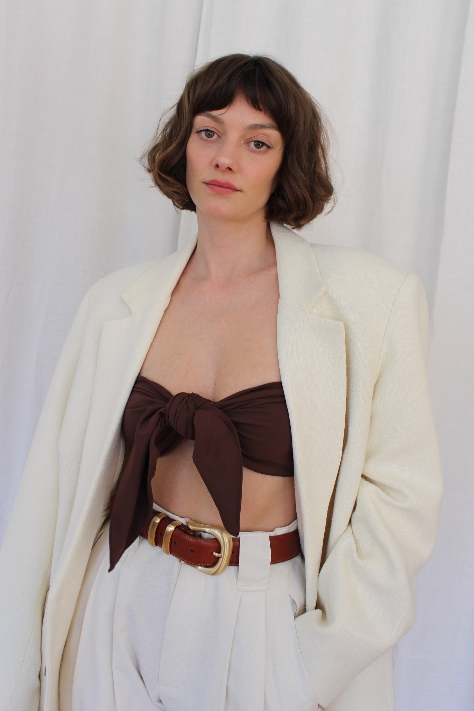 The Anita Swim Bandeau represents a refined take on a collection staple, crafted in our signature butter-soft swim fabric. Designed as a versatile layering piece, it pairs seamlessly with coordinating swim separates, skirts, or sheer overlays for curated, contemporary styling. This bandeau embodies our design philosophy—understated elegance that commands attention through quality and intentional construction.