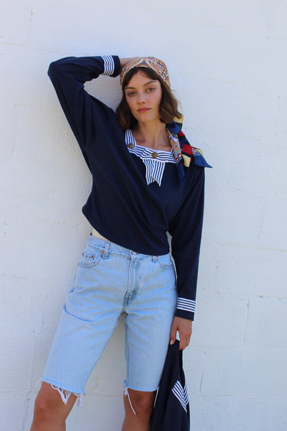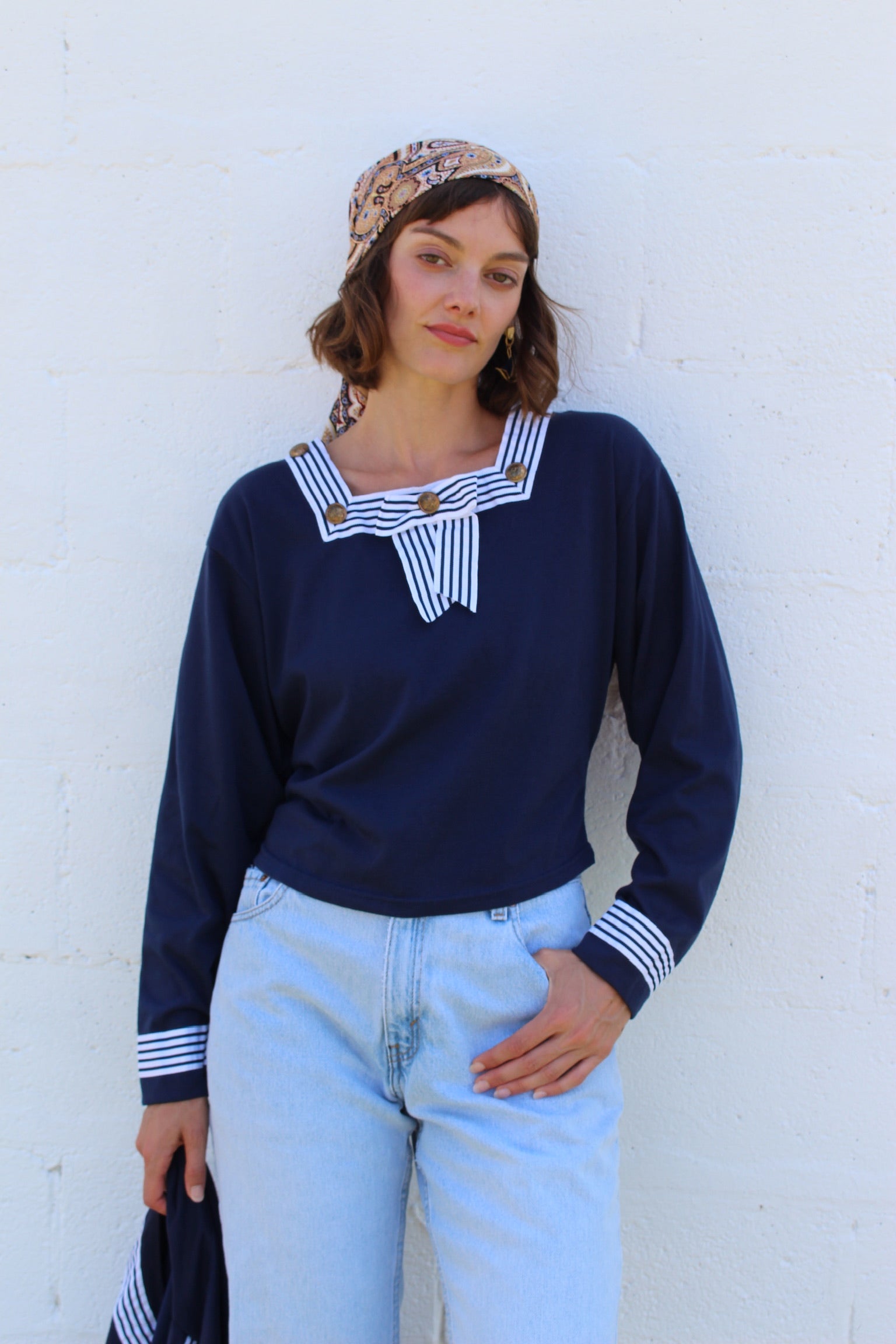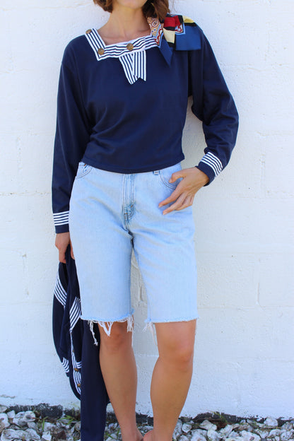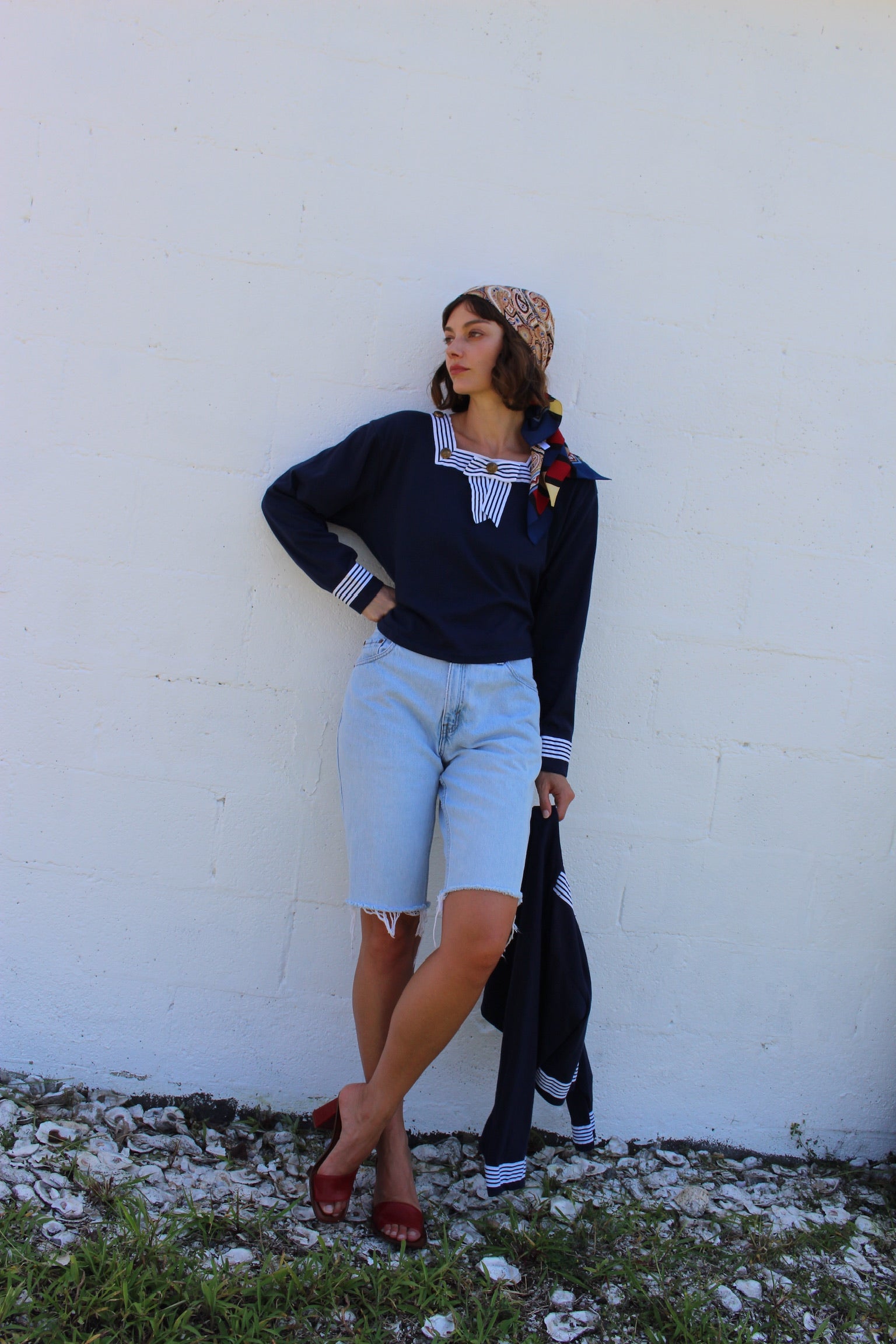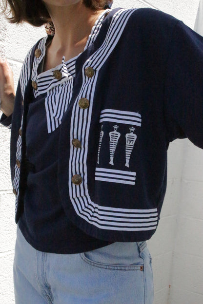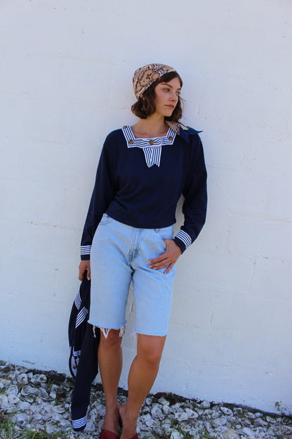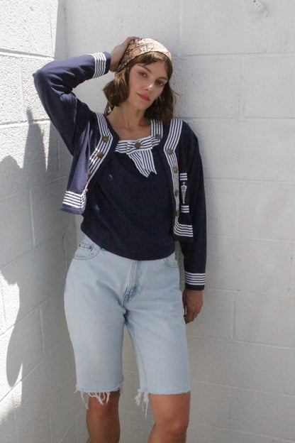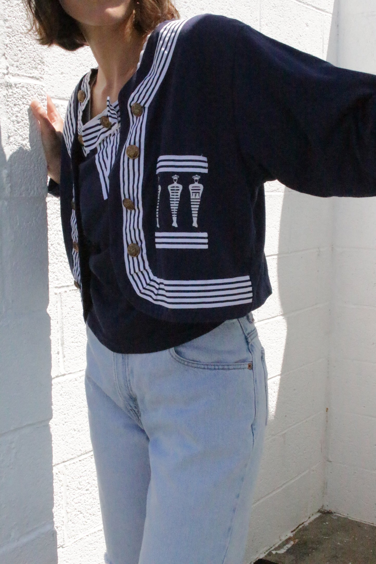 Beautiful Vintage Navy & Ivory Trimmed Cardigan Set