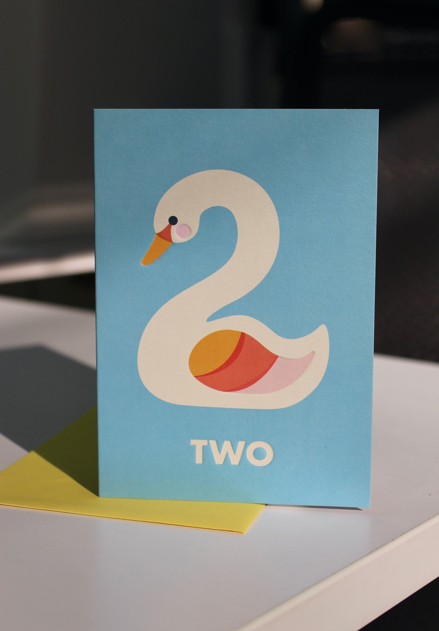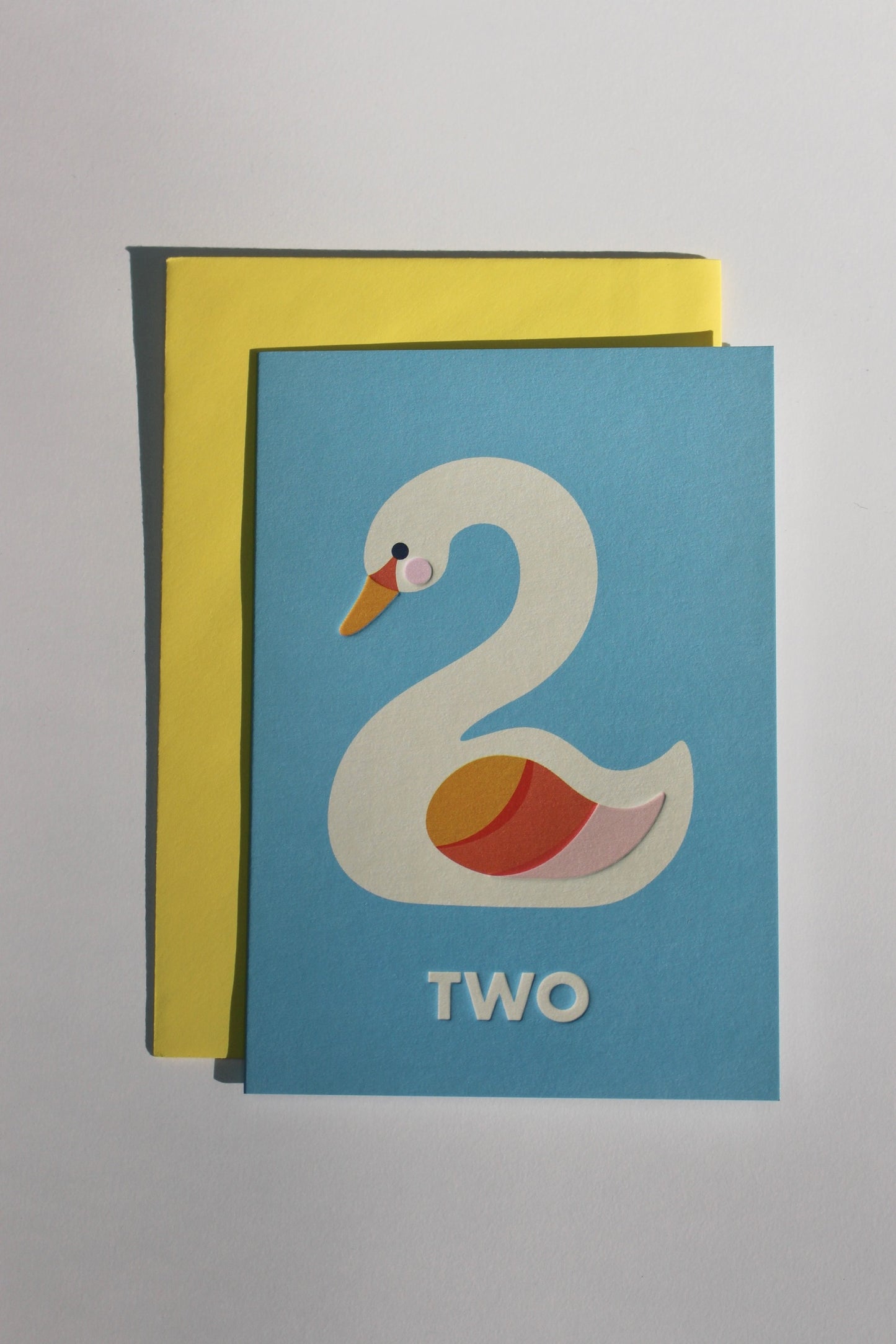 A swan card for a sweet second birthday. It has a debossed design with an elegant matte finish.