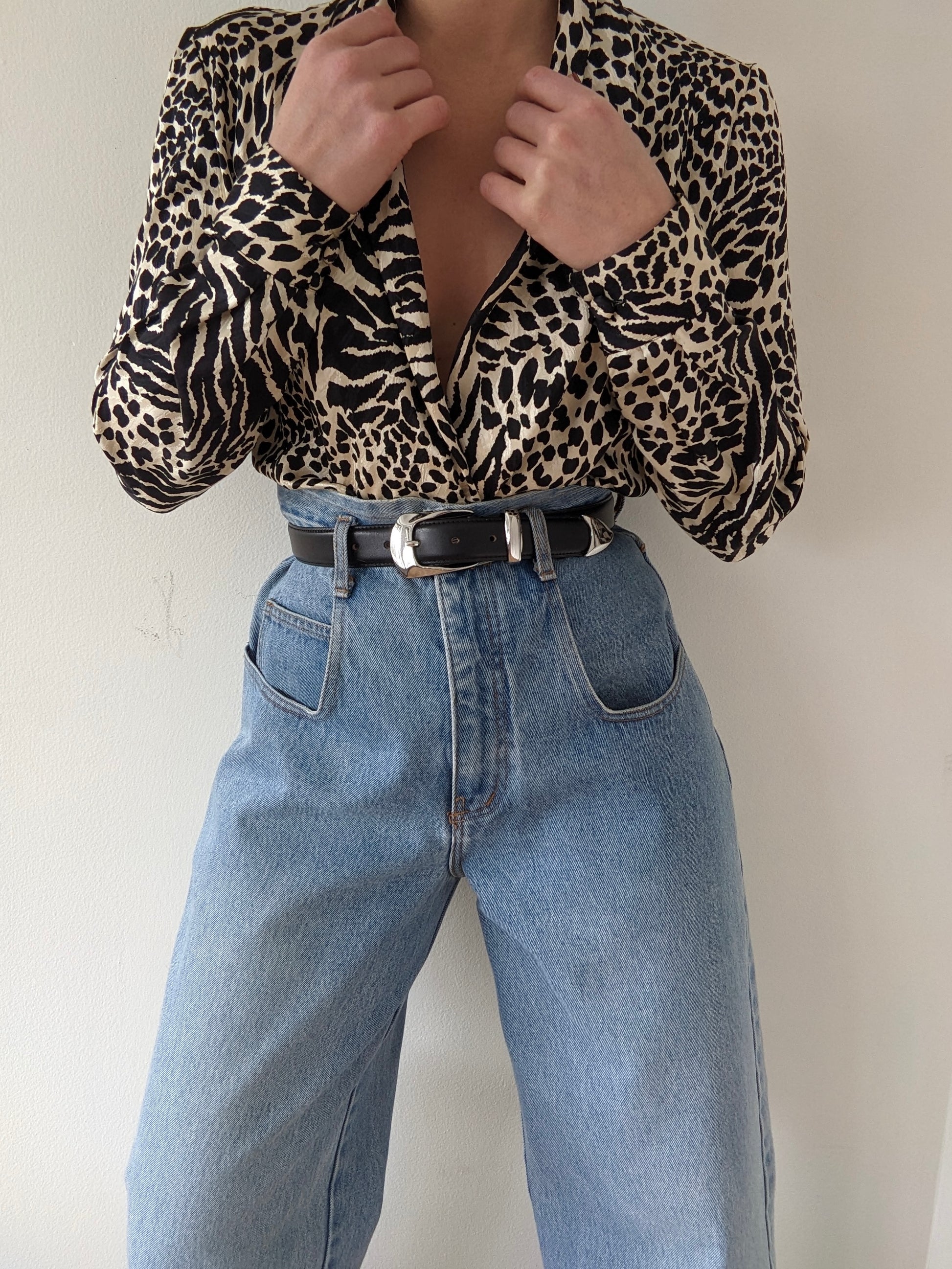Bold Vintage Animal Print Silk Blouse