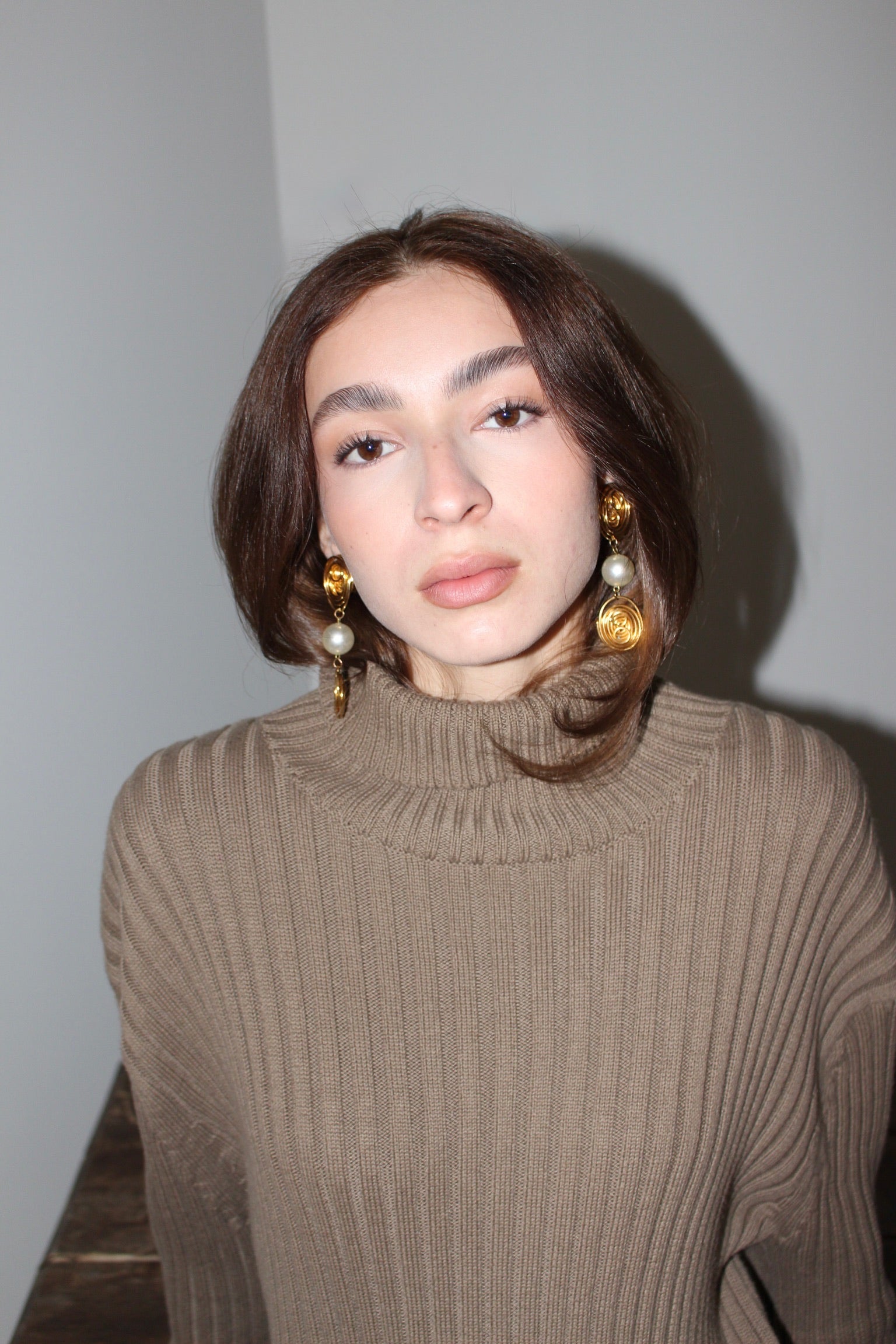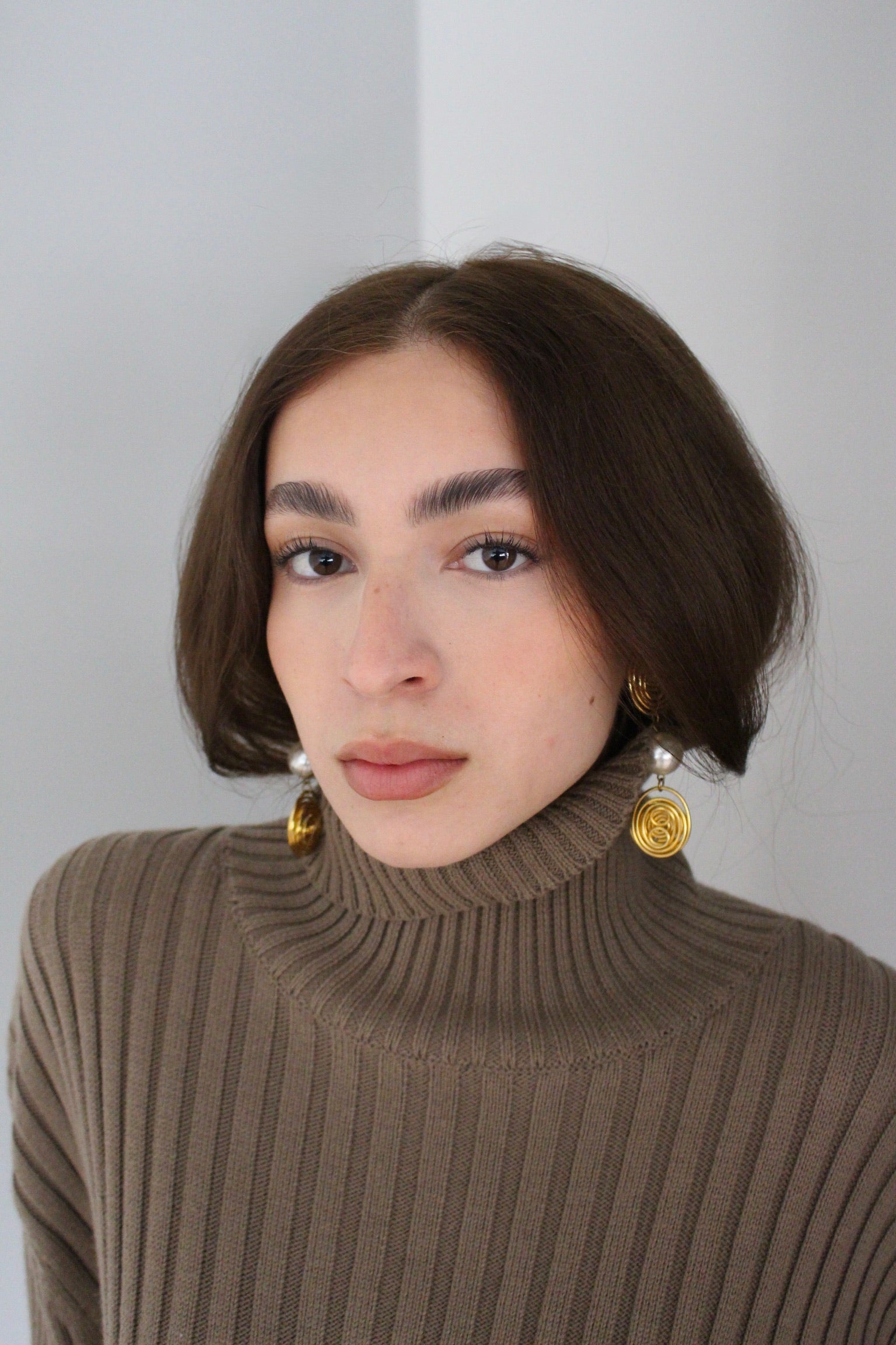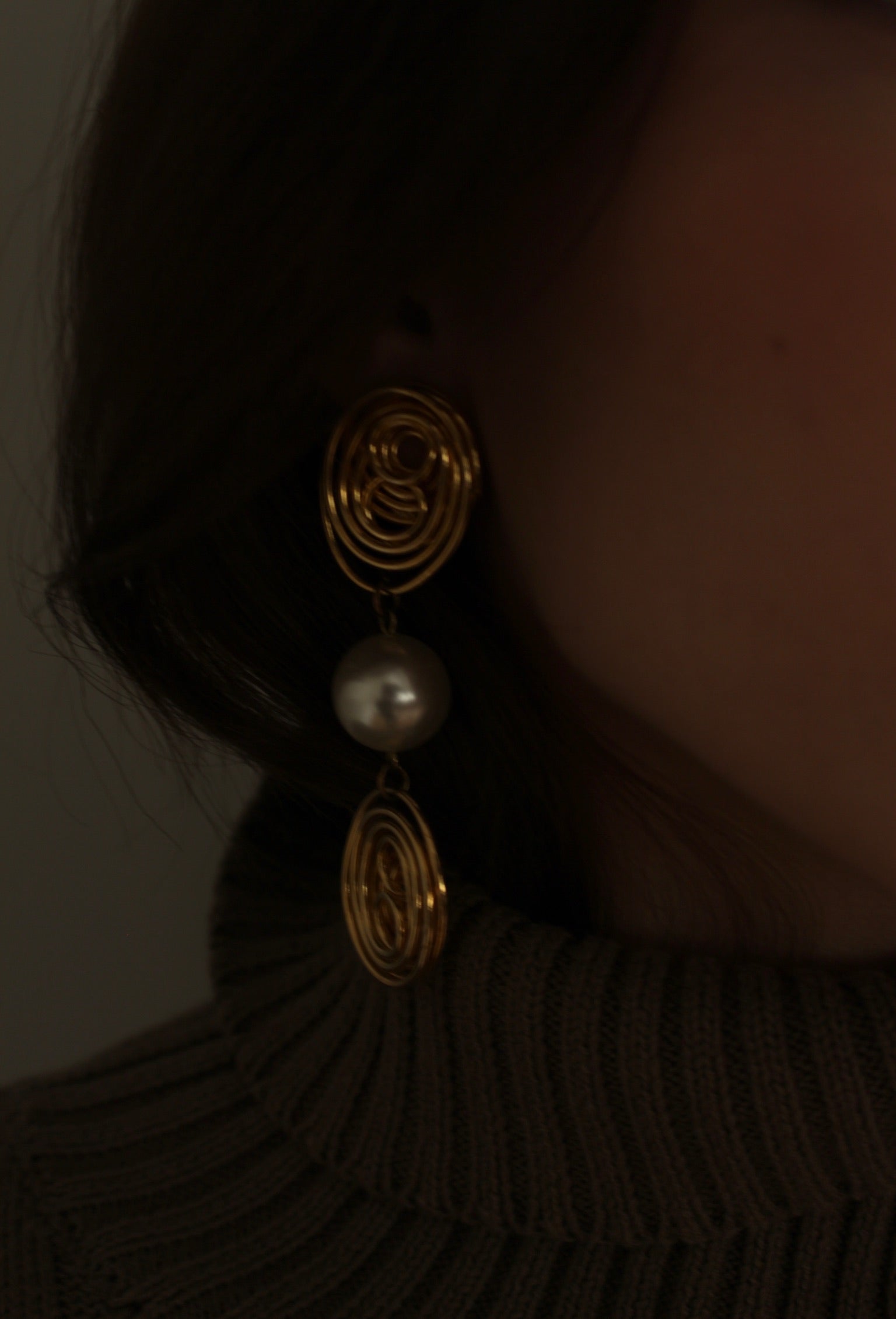 Bold Vintage Gold Spiral & Faux Pearl Drop Earrings