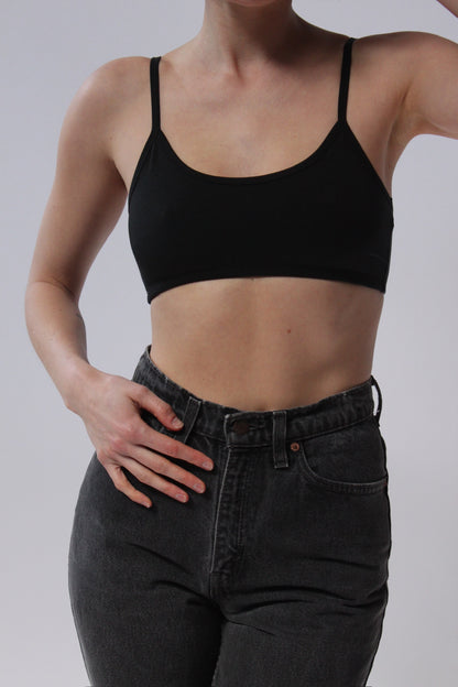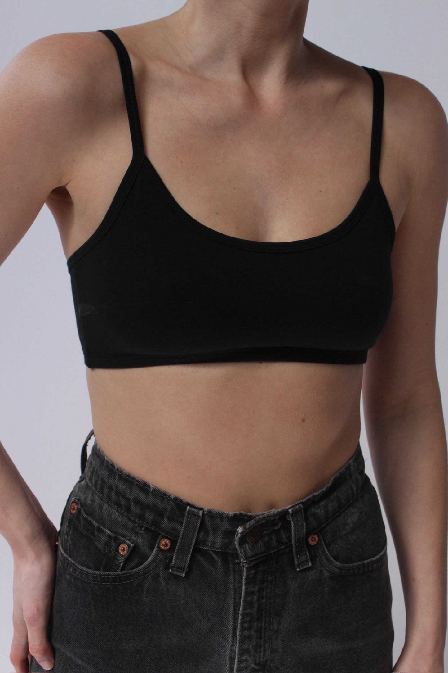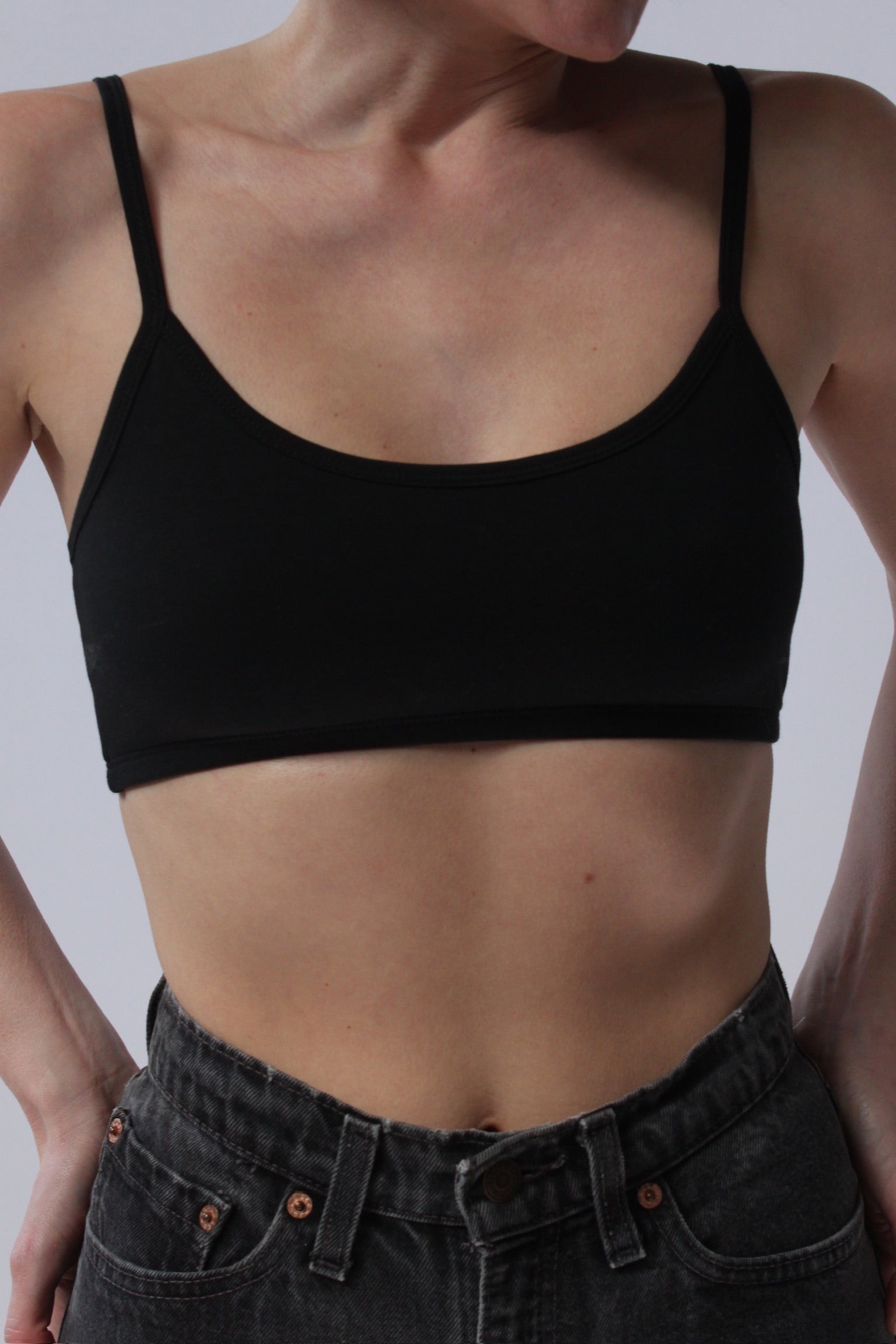 The bralette boasts softness, breathability, and a focus on comfort. Its delicate straps sit seamlessly on the skin while an extra layer in the front offers added support. We have eliminated pesky plastic strap adjusters to prevent discomfort. Produced in North Carolina with the finest USA-grown Supima cotton, this fabric ensures durability and a luxurious feel. You can trust that our bralettes are made to withstand frequent washes without losing their quality.