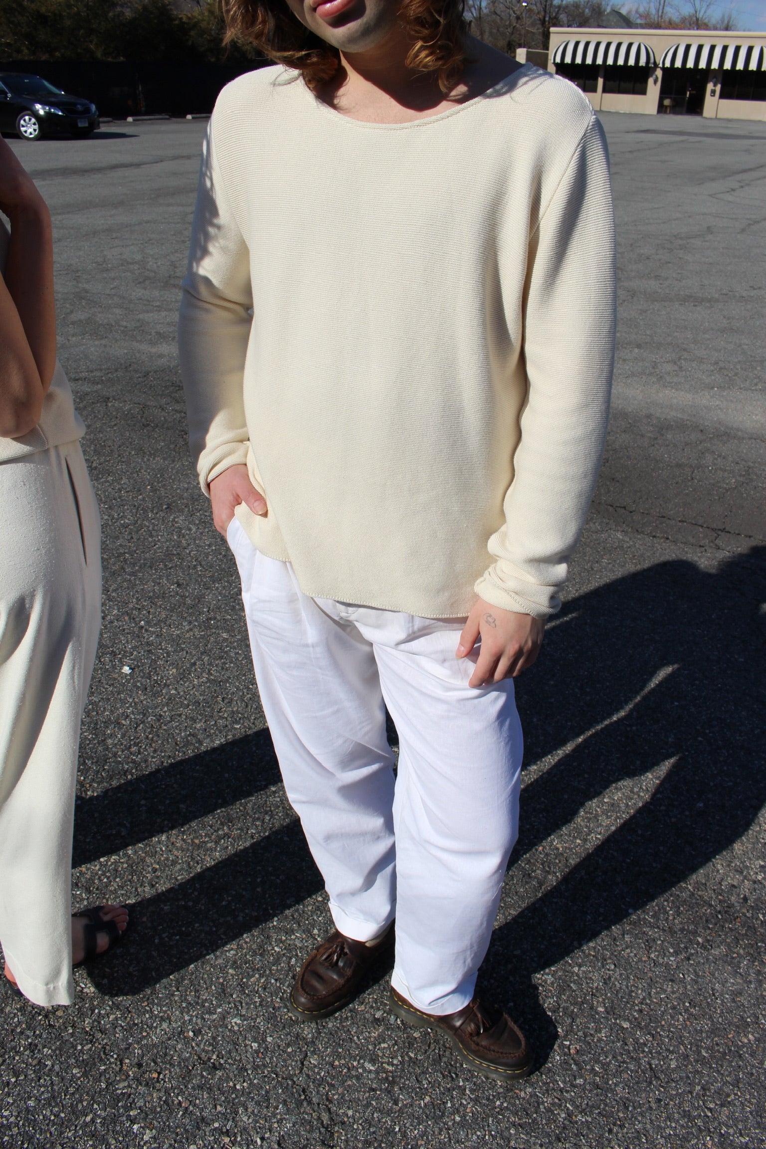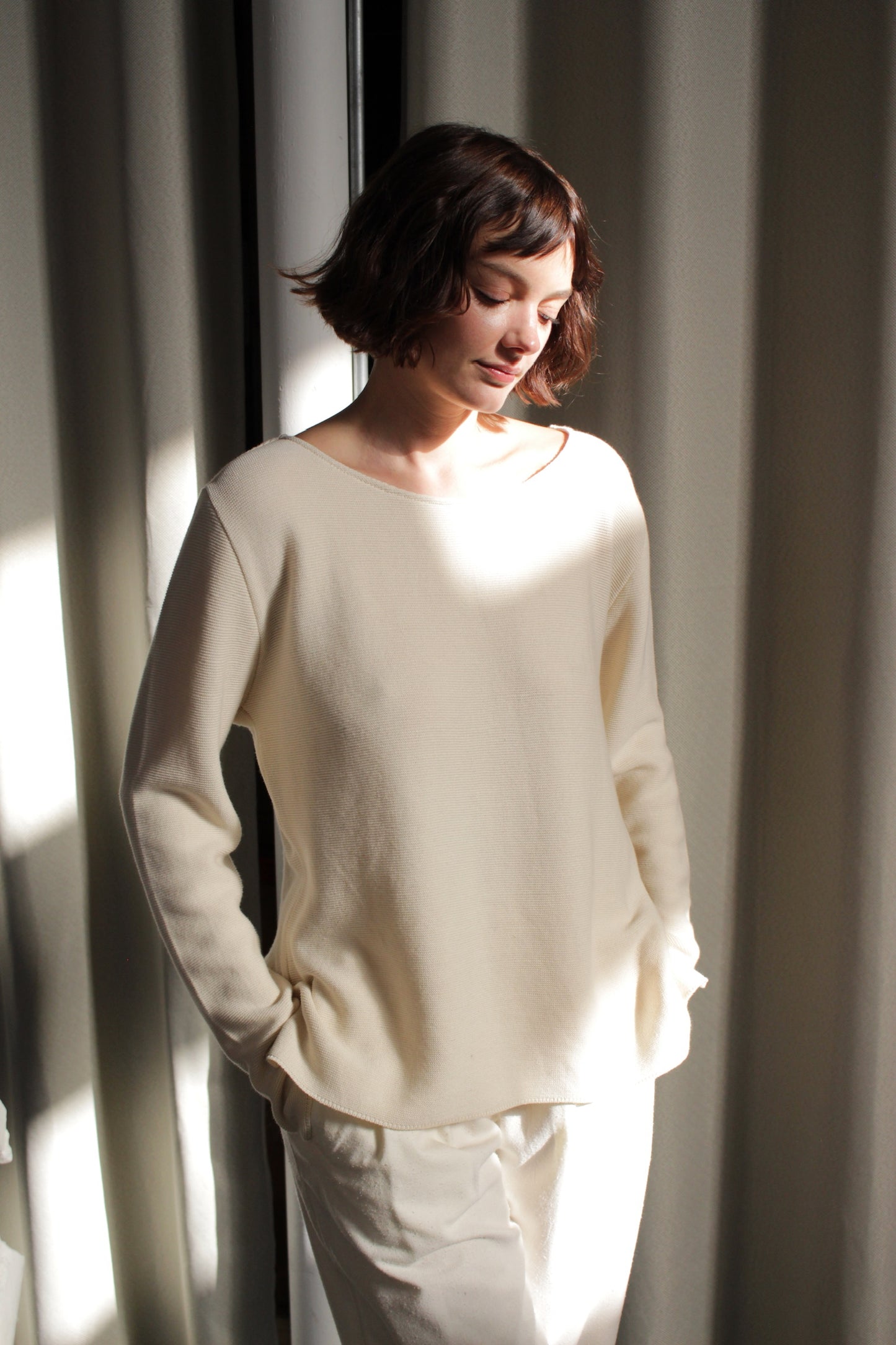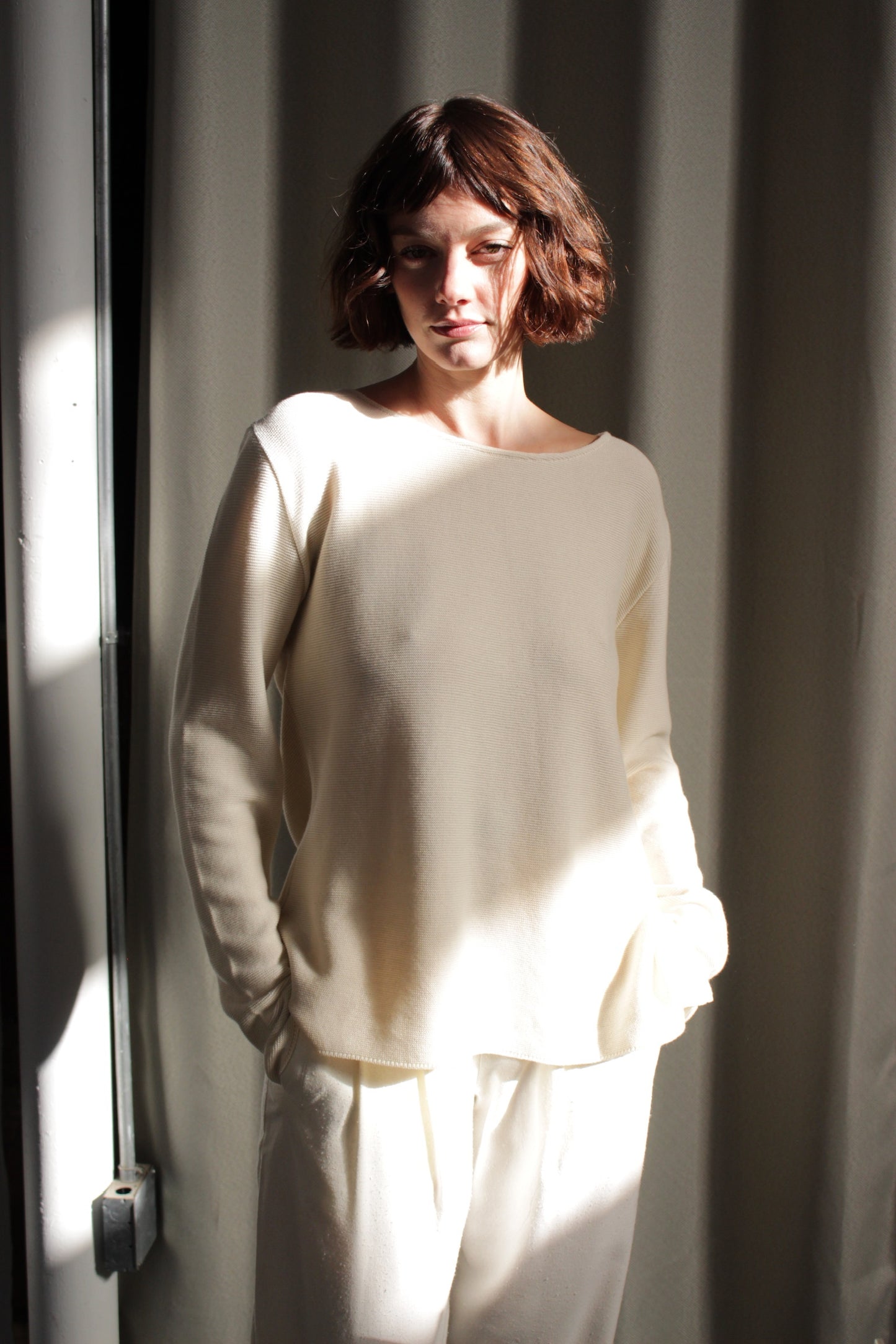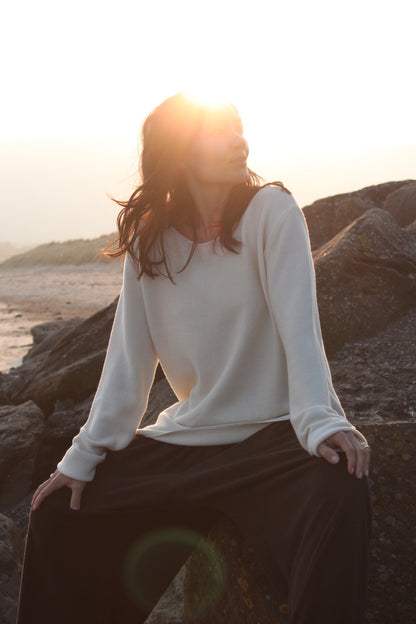 The Chris Cotton Seed Stitch Top is a unisex long sleeve pullover top with a vintage feel. Our team was motivated by a beloved sweater and worked to replicate the original fabric for our latest collection. Featuring a casual relaxed fit, a flattering scoop neck, and side slits for added comfort - the Chris Top is primed to become your go-to essential!
