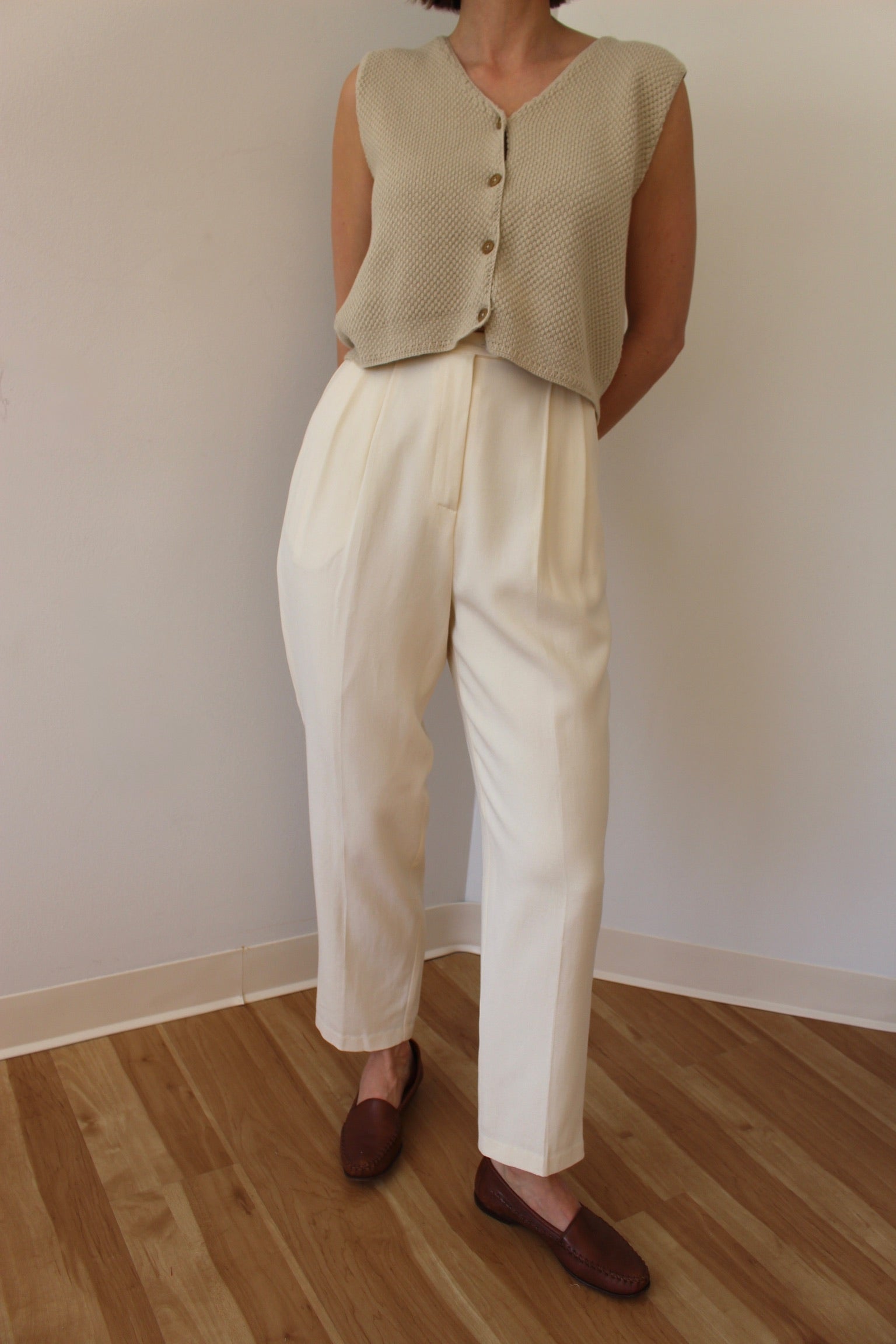 Classic Vintage Cream Pleated Wool Trousers