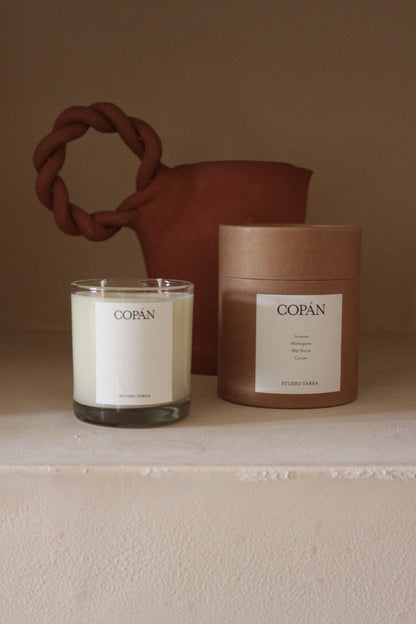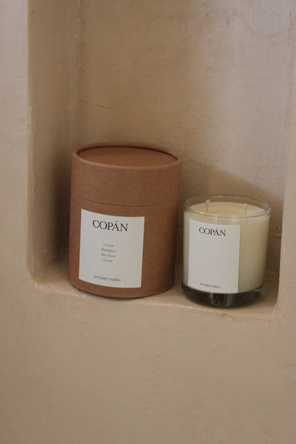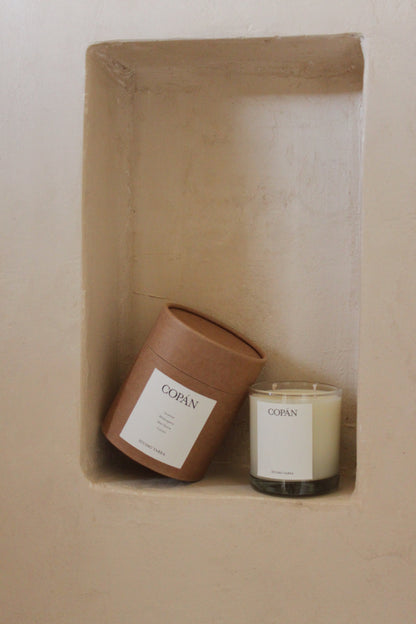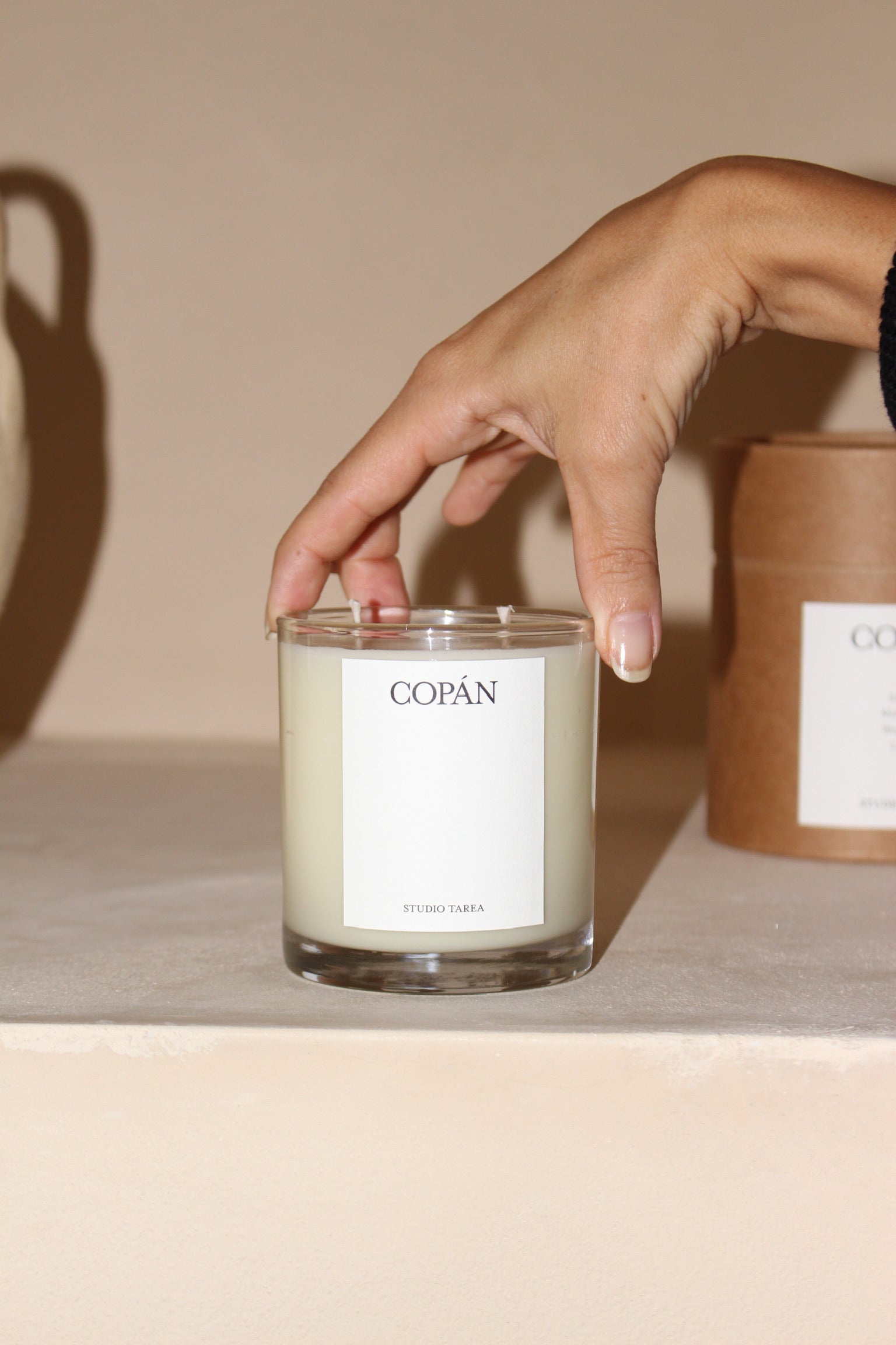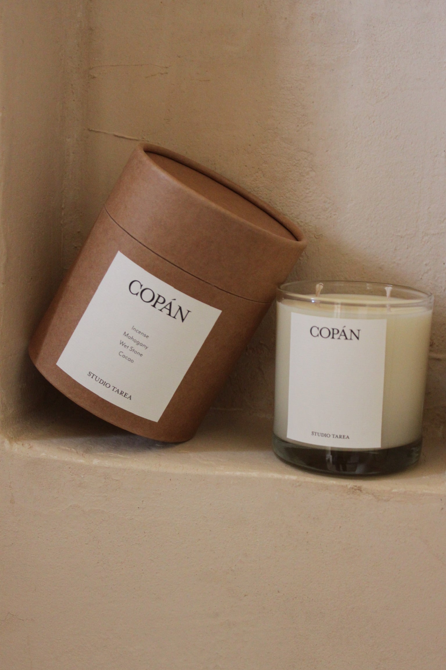 Copán’s namesake Mayan city is nestled in the misty mountains of Honduras, full of macaws, cacao pods, and towering trees. Notes of incense, mahogany, wet stone, and ceremonial cacao make this an extremely bespoke candle—one that Studio Tarea calls their signature scent.