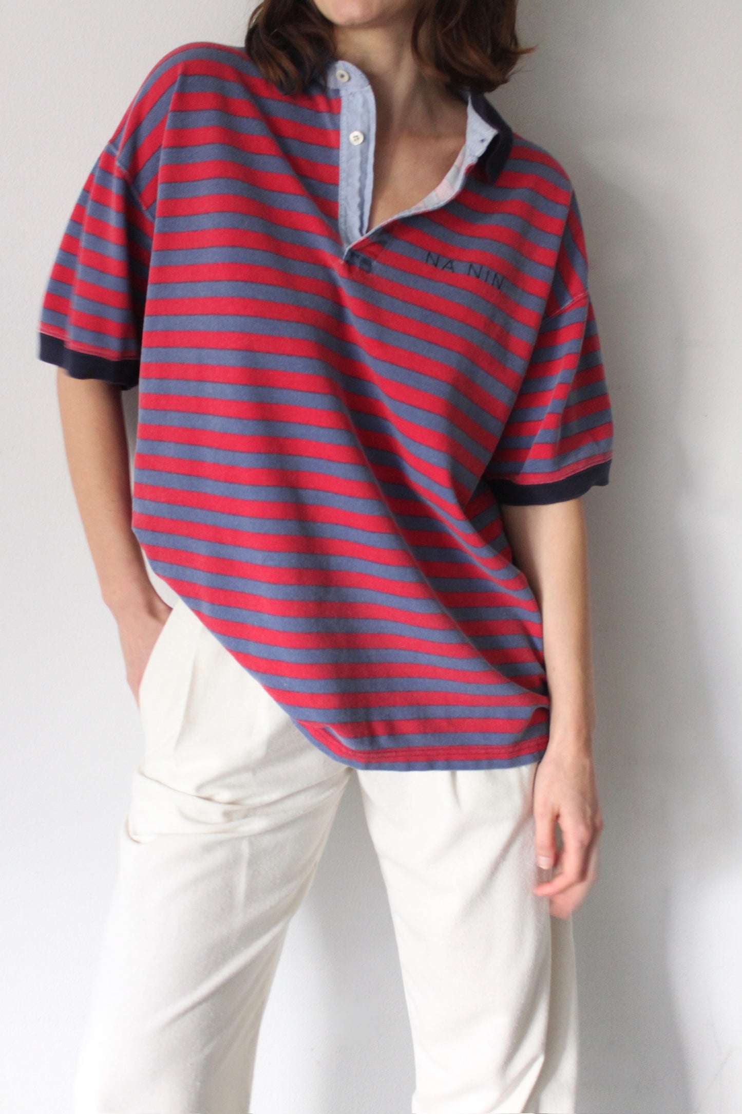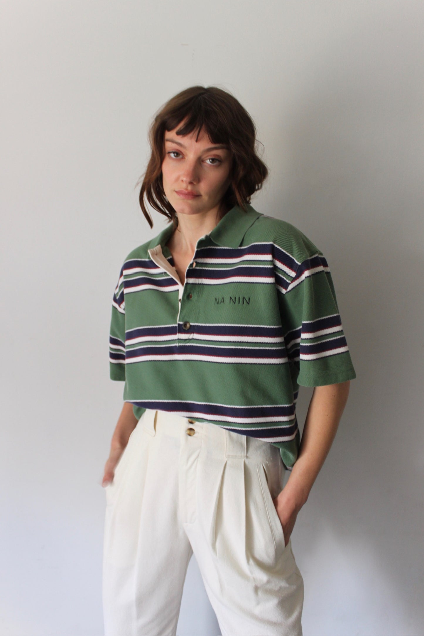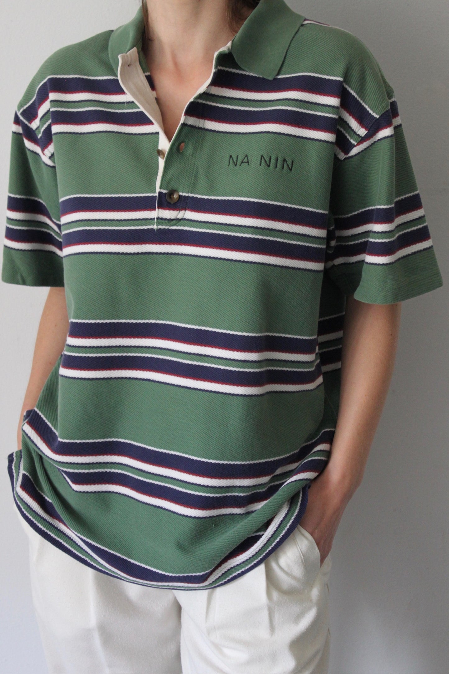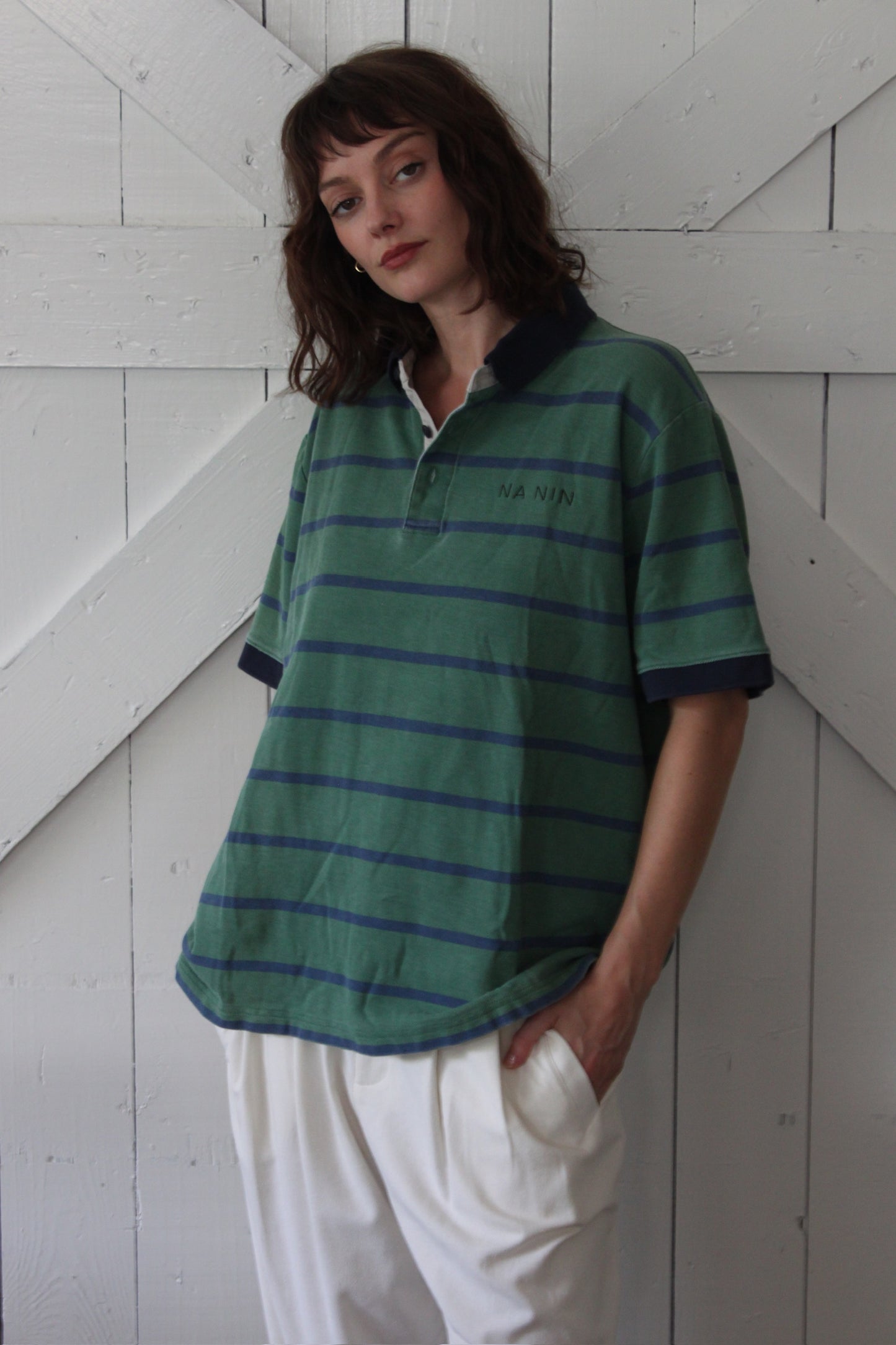 A special limited release of a favorite vintage striped polo style, custom embroidered with our Na Nin logo at the left chest. A nostalgic homage to vintage classics and where it all began for Na Nin. We envision this style to be worn relaxed and sizing is approximate for these one-off vintage pieces - please refer to the measurements below for guidance.