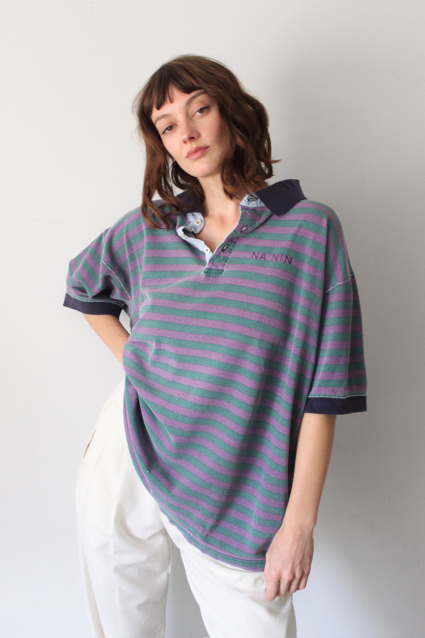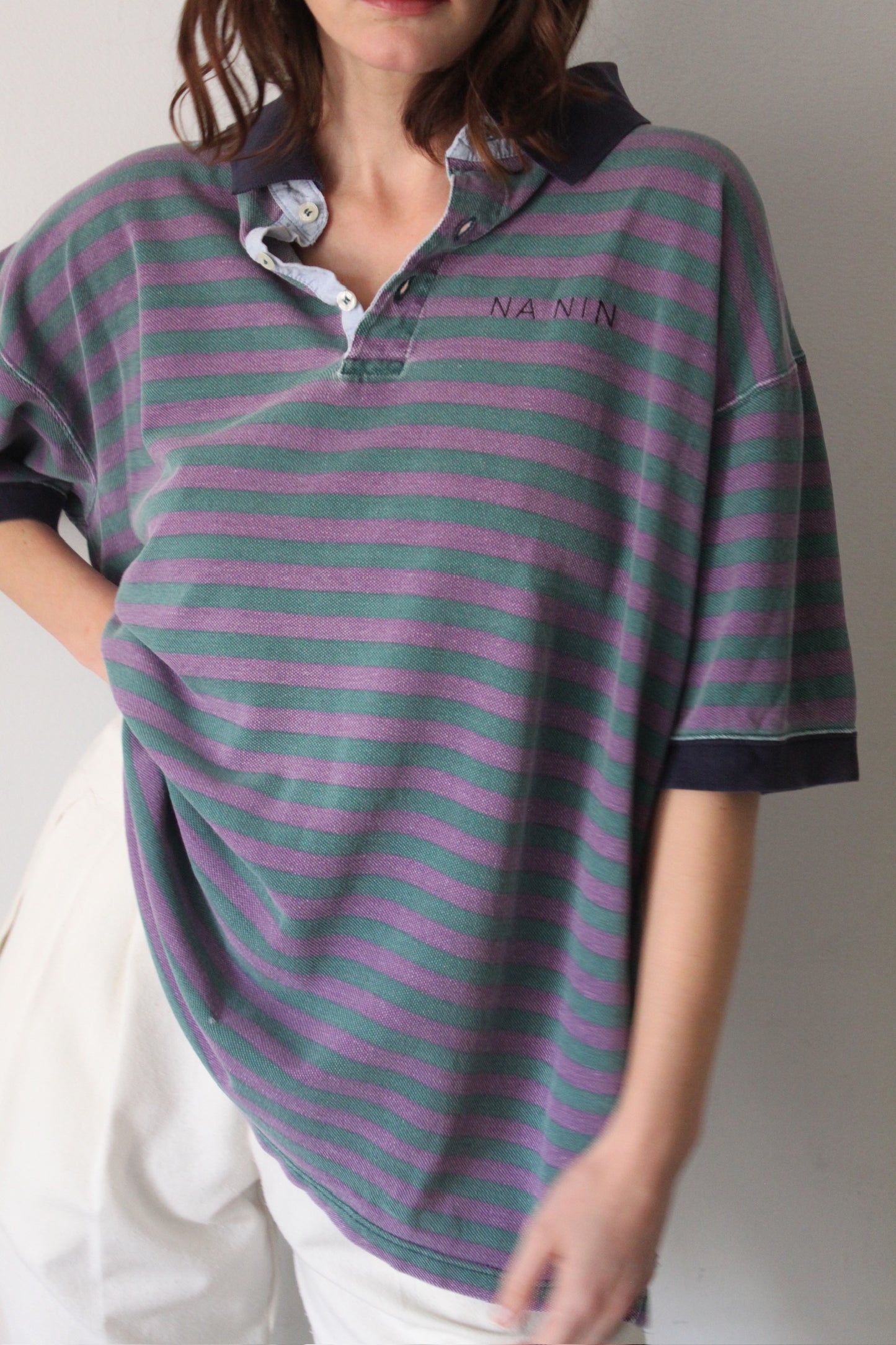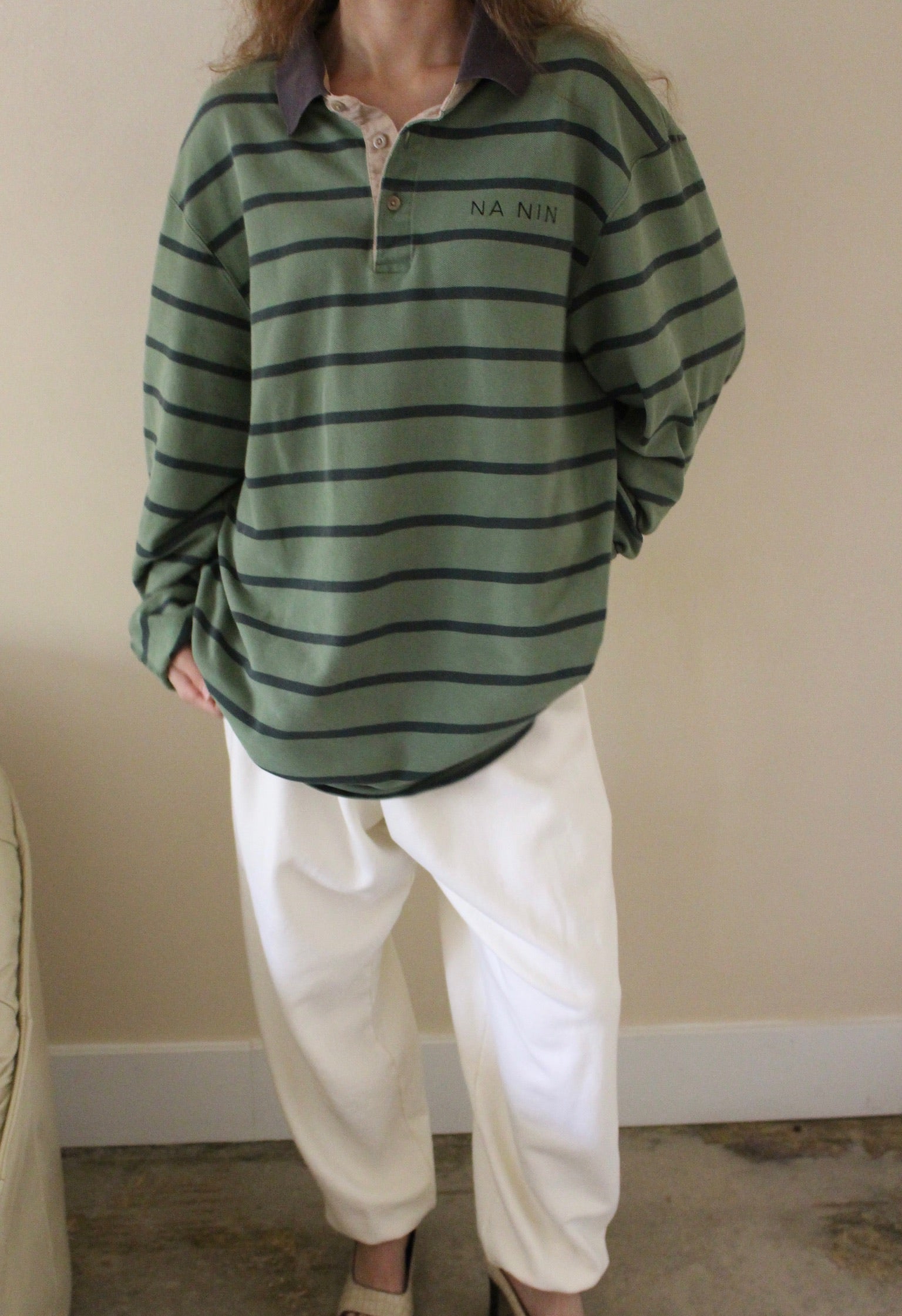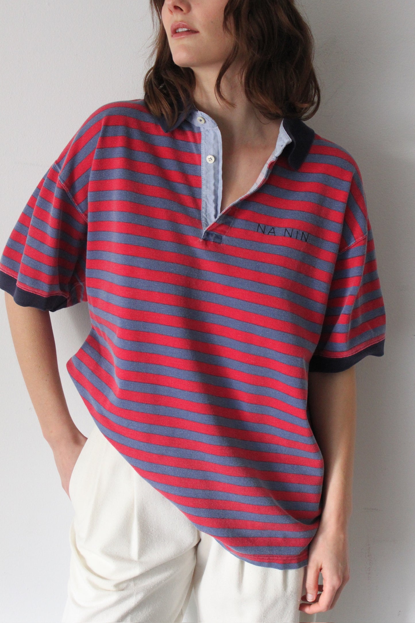A special limited release of a favorite vintage striped polo style, custom embroidered with our Na Nin logo at the left chest. A nostalgic homage to vintage classics and where it all began for Na Nin. We envision this style to be worn relaxed and sizing is approximate for these one-off vintage pieces - please refer to the measurements below for guidance.