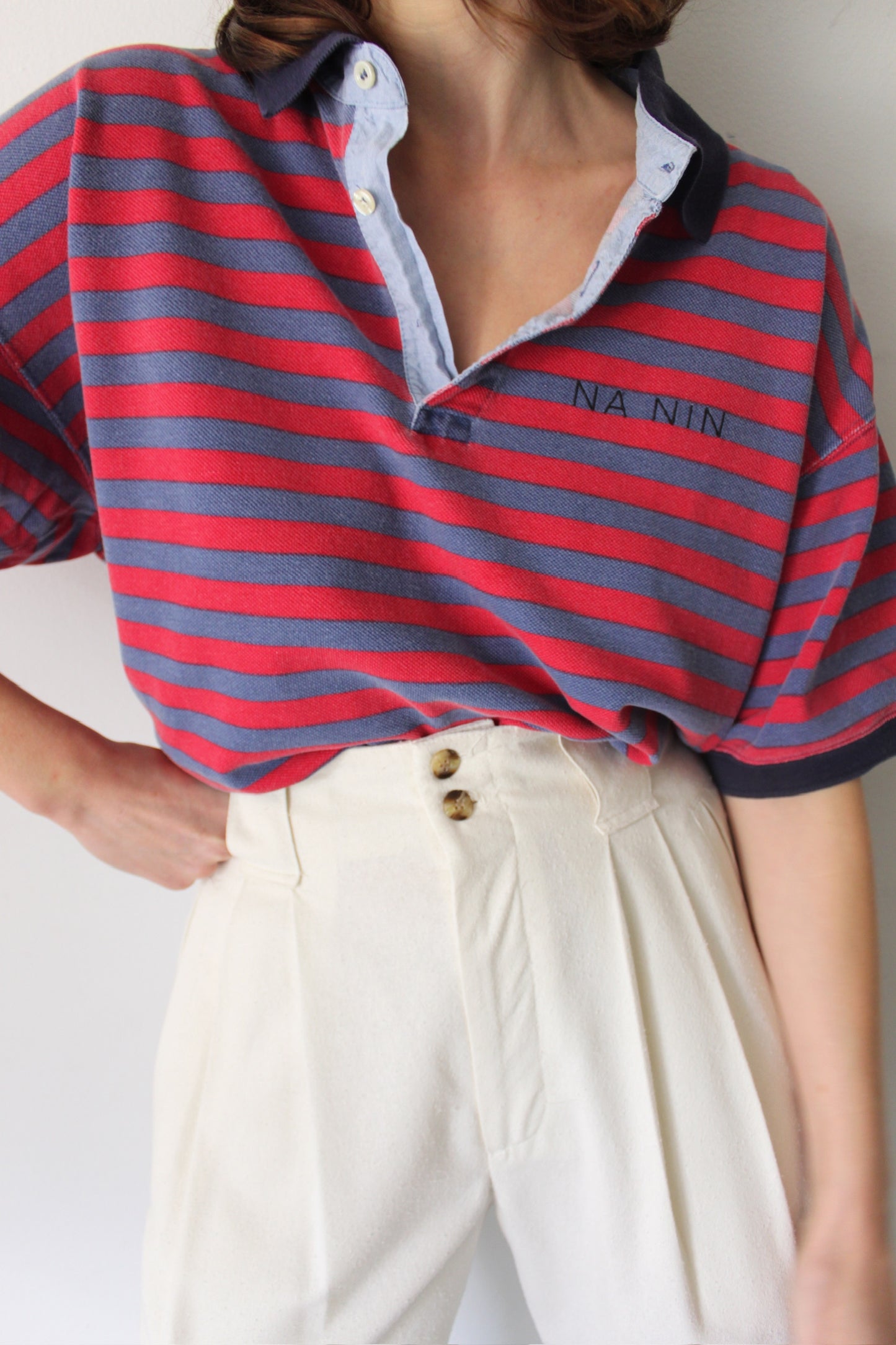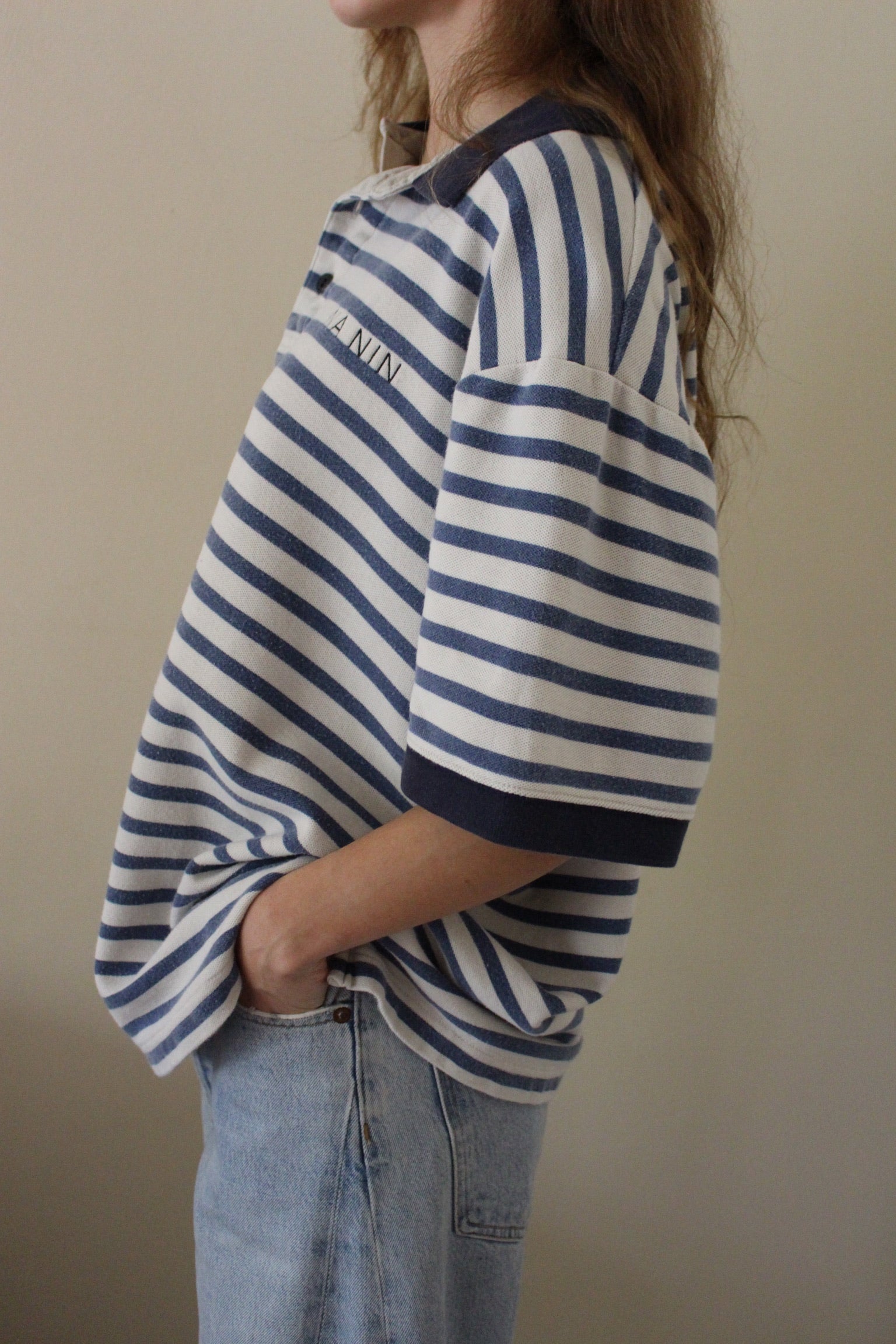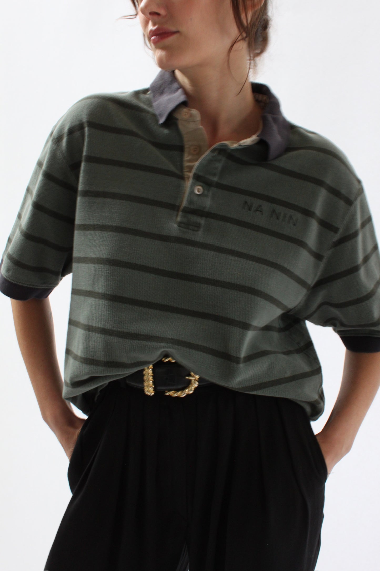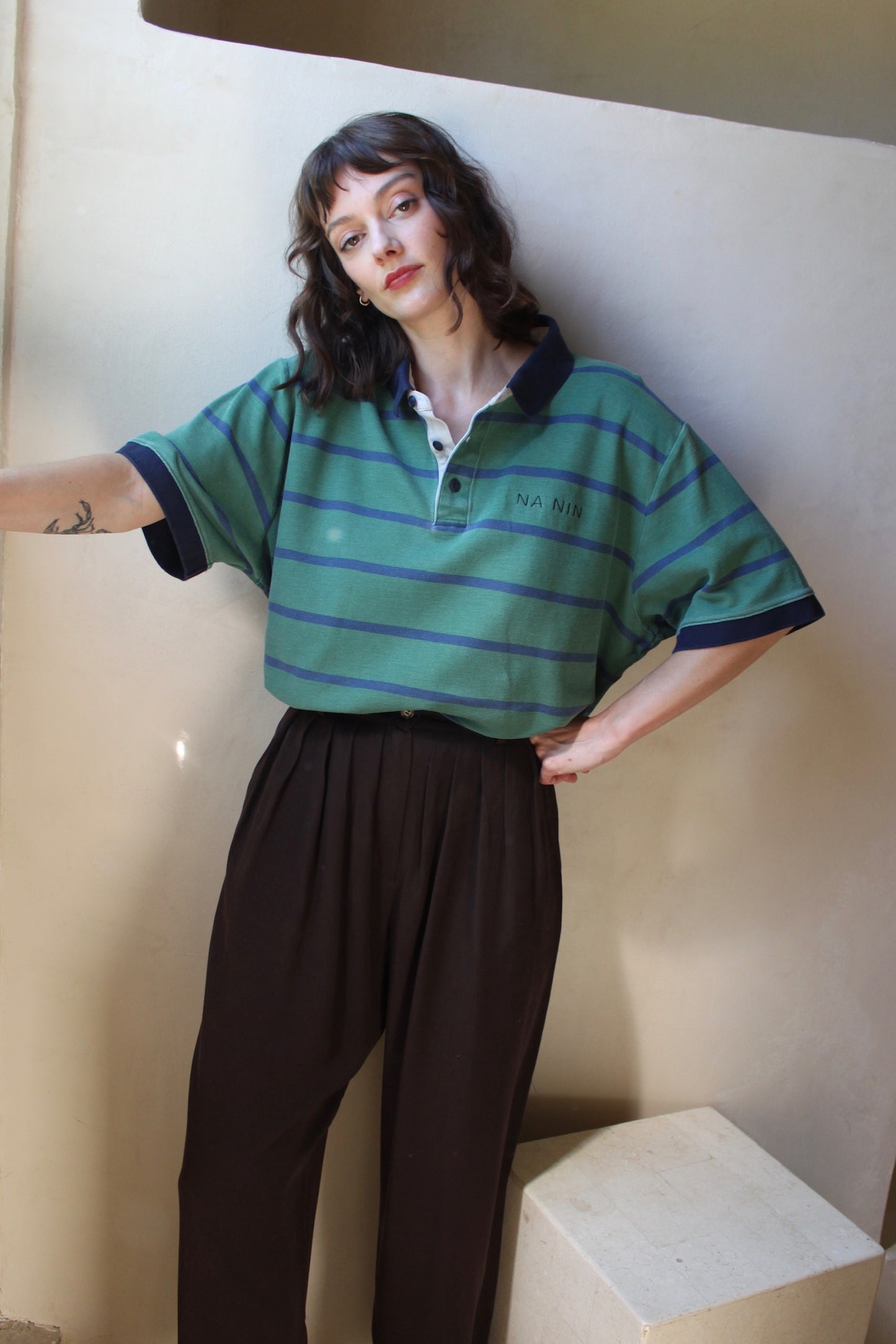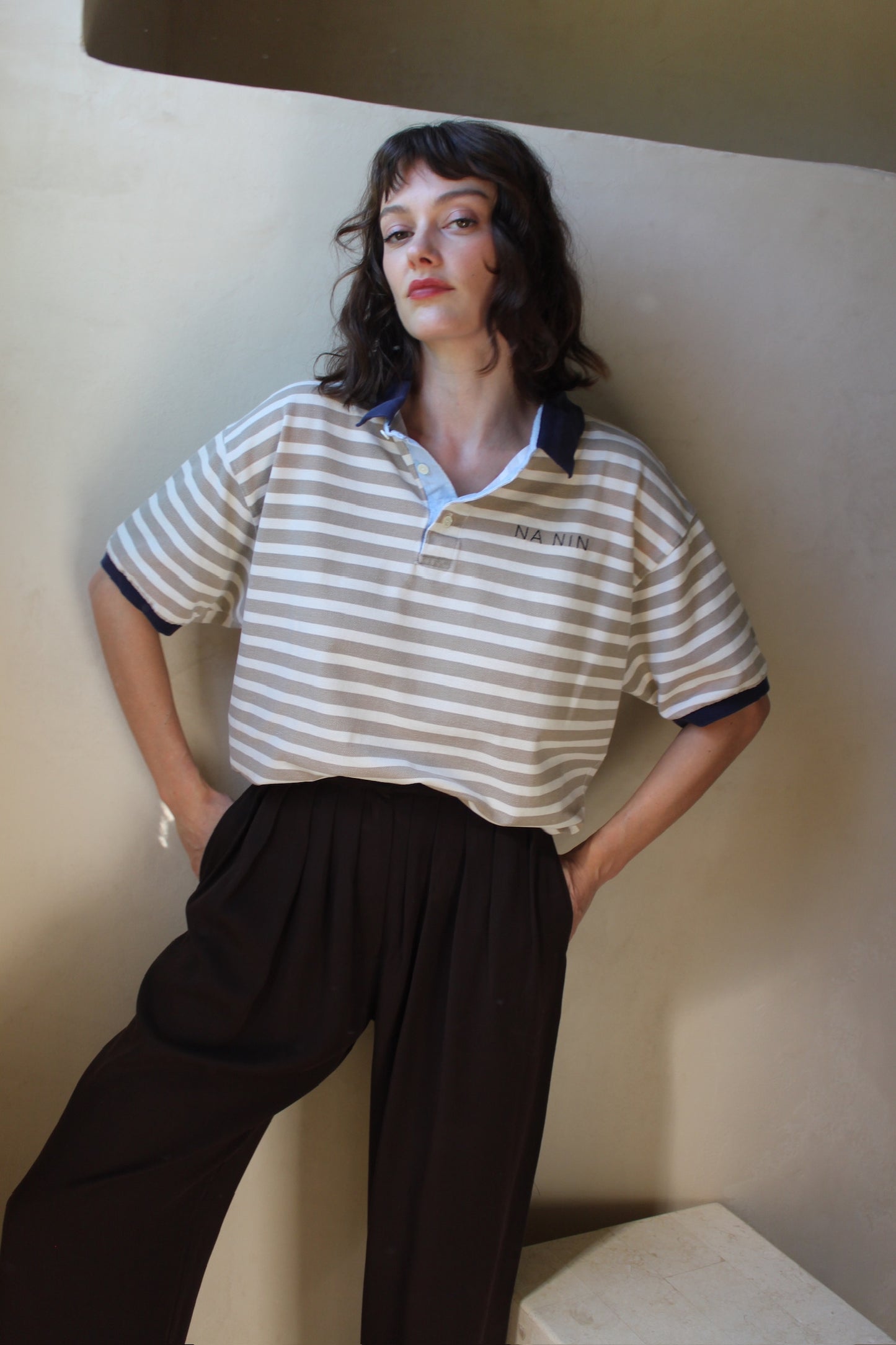 A special limited release of a favorite vintage striped polo style, custom embroidered with our Na Nin logo at the left chest. A nostalgic homage to vintage classics and where it all began for Na Nin. We envision this style to be worn relaxed and sizing is approximate for these one-off vintage pieces - please refer to the measurements below for guidance.