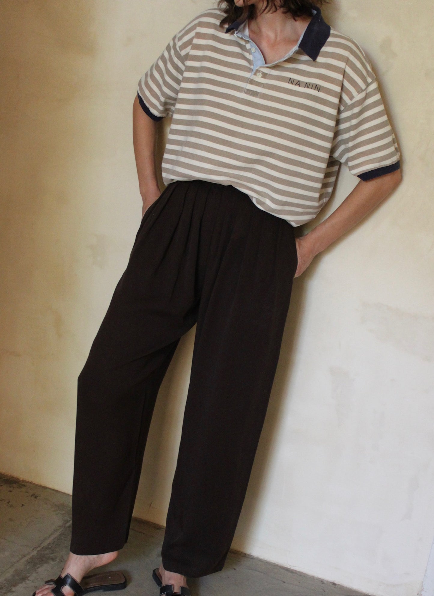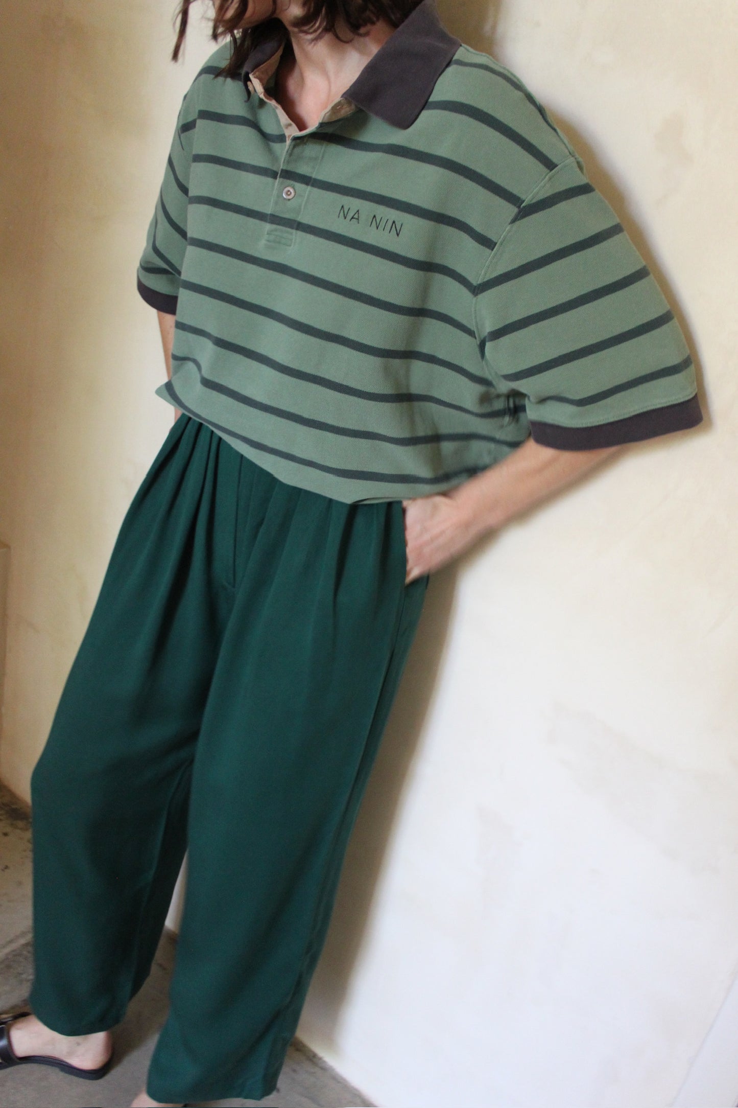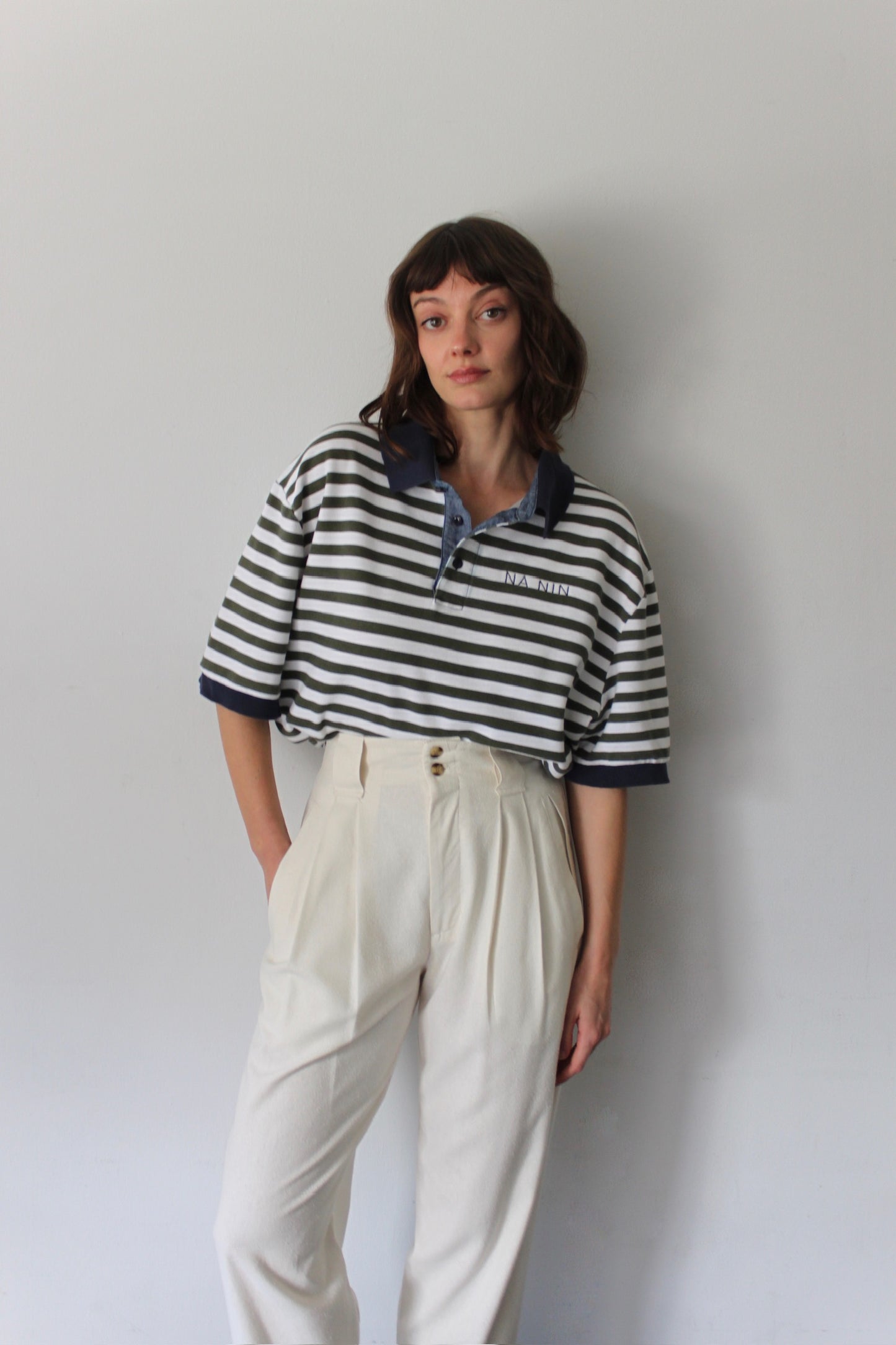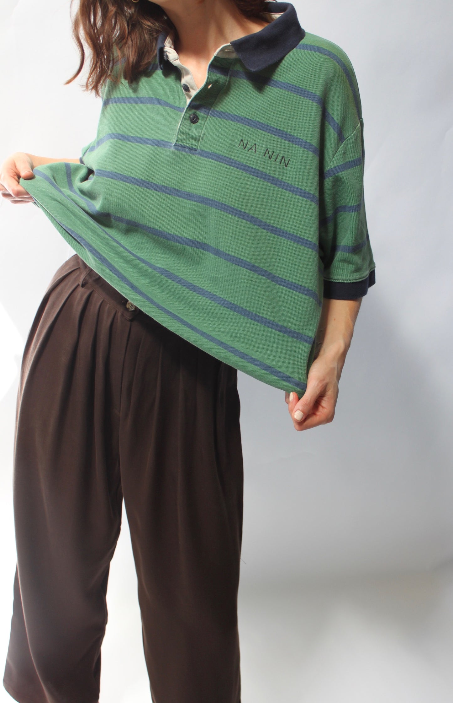 A special limited release of a favorite vintage striped polo style, custom embroidered with our Na Nin logo at the left chest. A nostalgic homage to vintage classics and where it all began for Na Nin. We envision this style to be worn relaxed and sizing is approximate for these one-off vintage pieces - please refer to the measurements below for guidance.