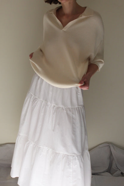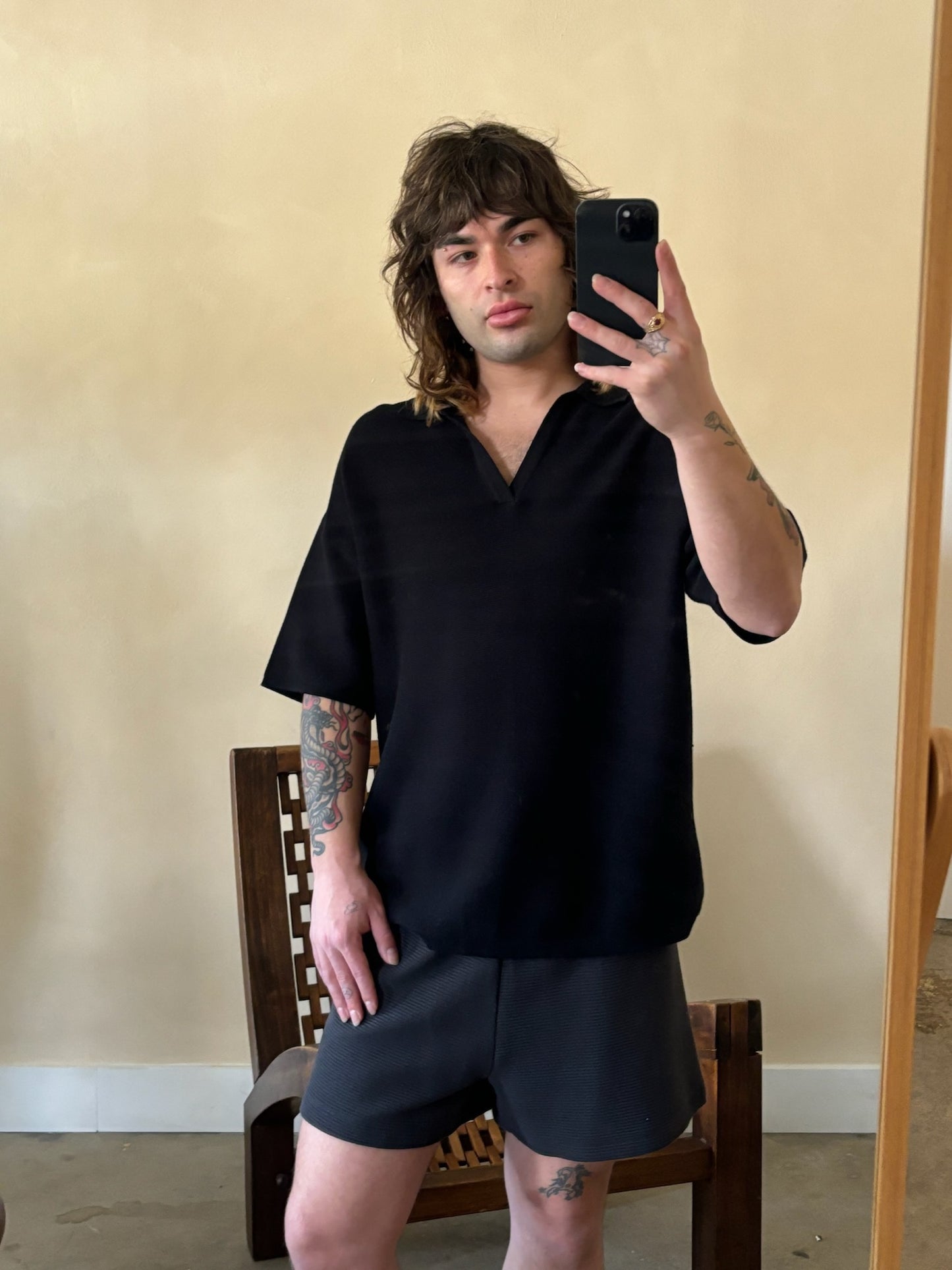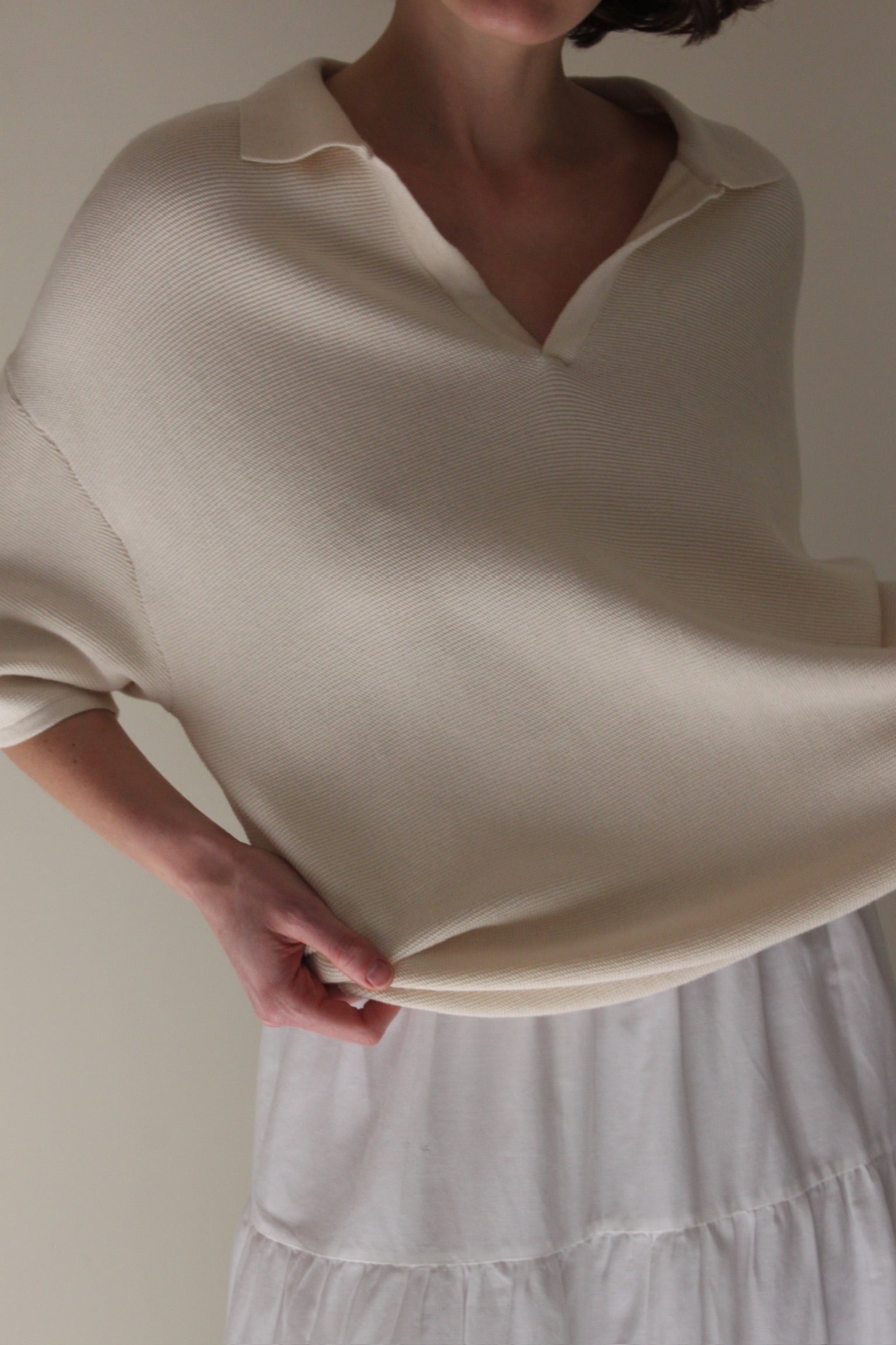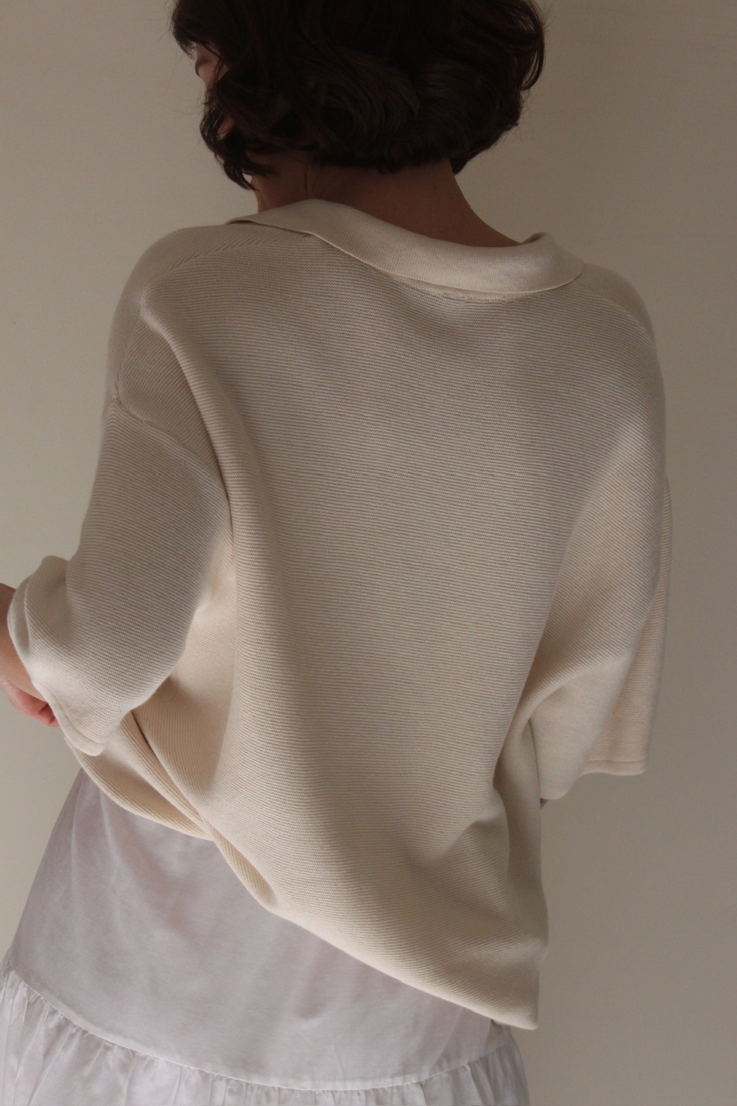 The Ernie Cotton Seed Stitch Polo is a unisex pullover top with a vintage feel. Our team was inspired by a beloved sweater and set out to recreate the original fabric for our new collection. With a relaxed fit, short sleeves, and casual spread collar, the Ernie offers a comfortable and laid-back style.