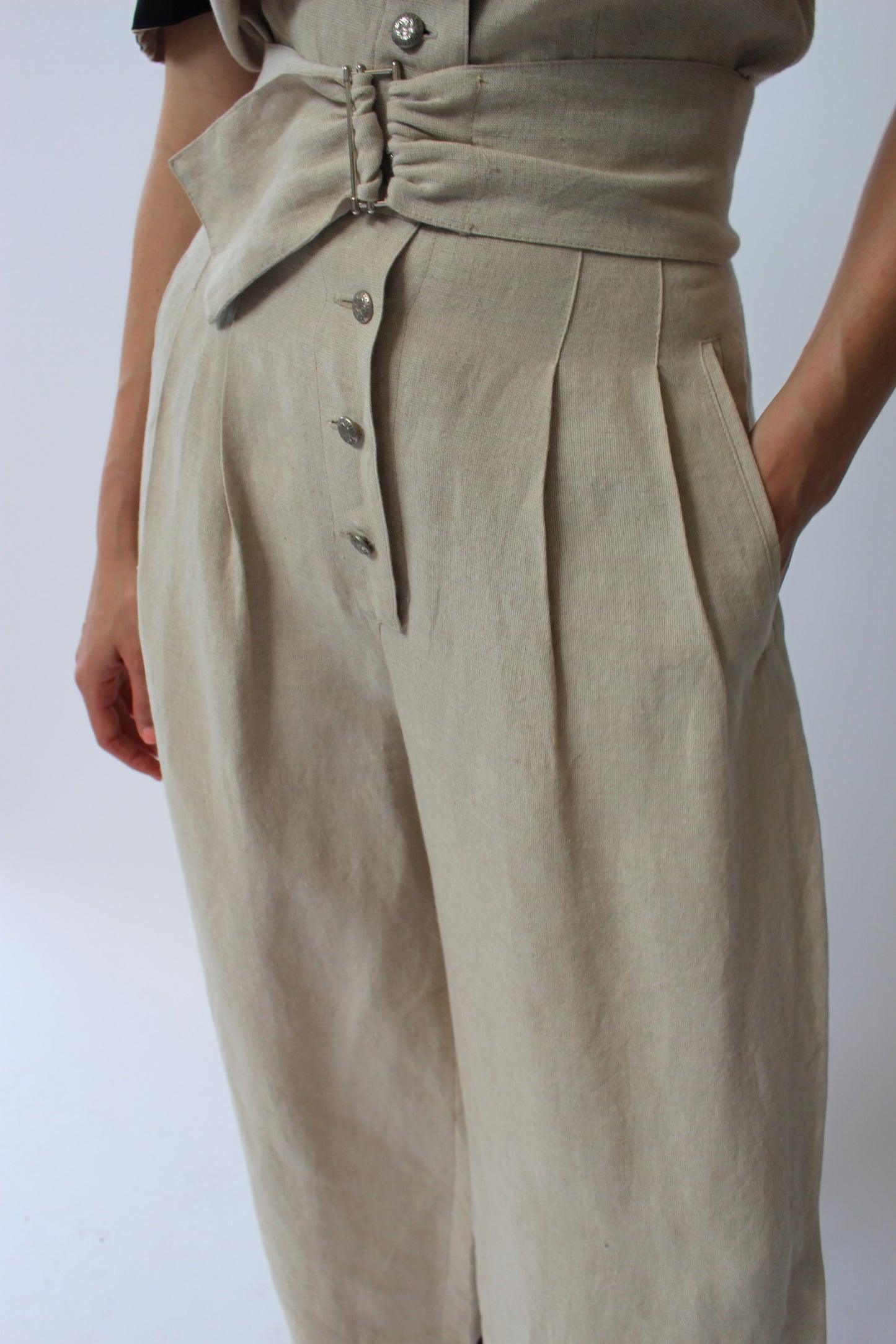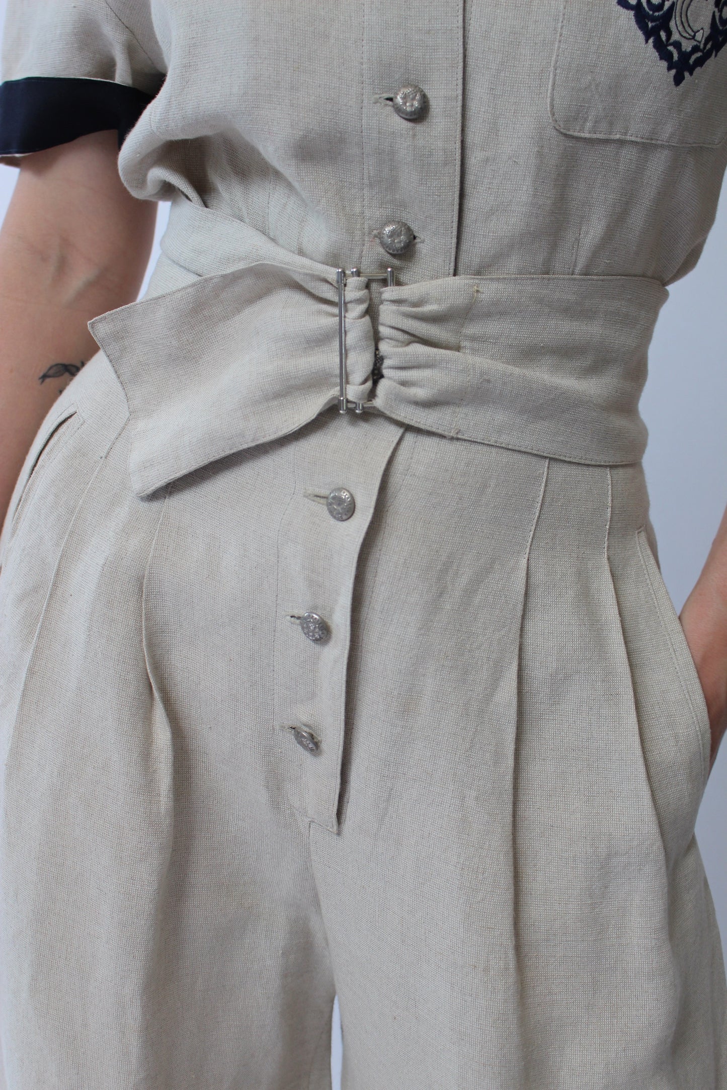 Favorite Vintage Linen Wide Leg Belted Jumpsuit