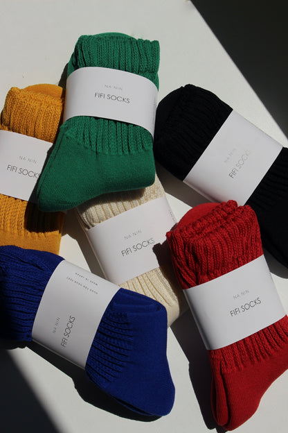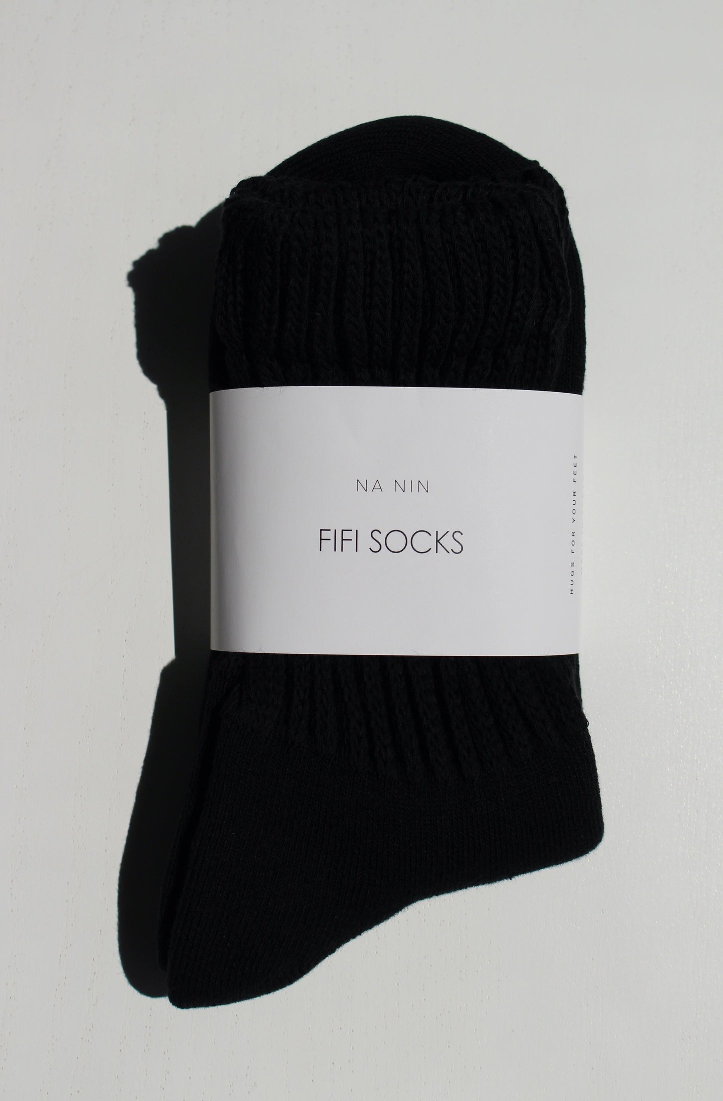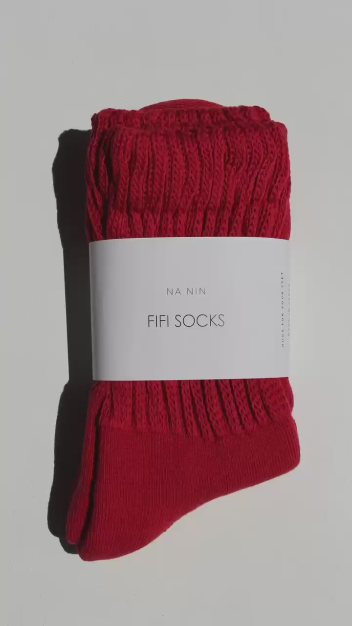 Meet the Na Nin FiFi Sock - a highly comfortable and durable sock for everyday wear, perfect for any season. With its elastic body and plush support, the FiFi offers a unique and versatile look, allowing you to wear it high or scrunched up to your own preference.