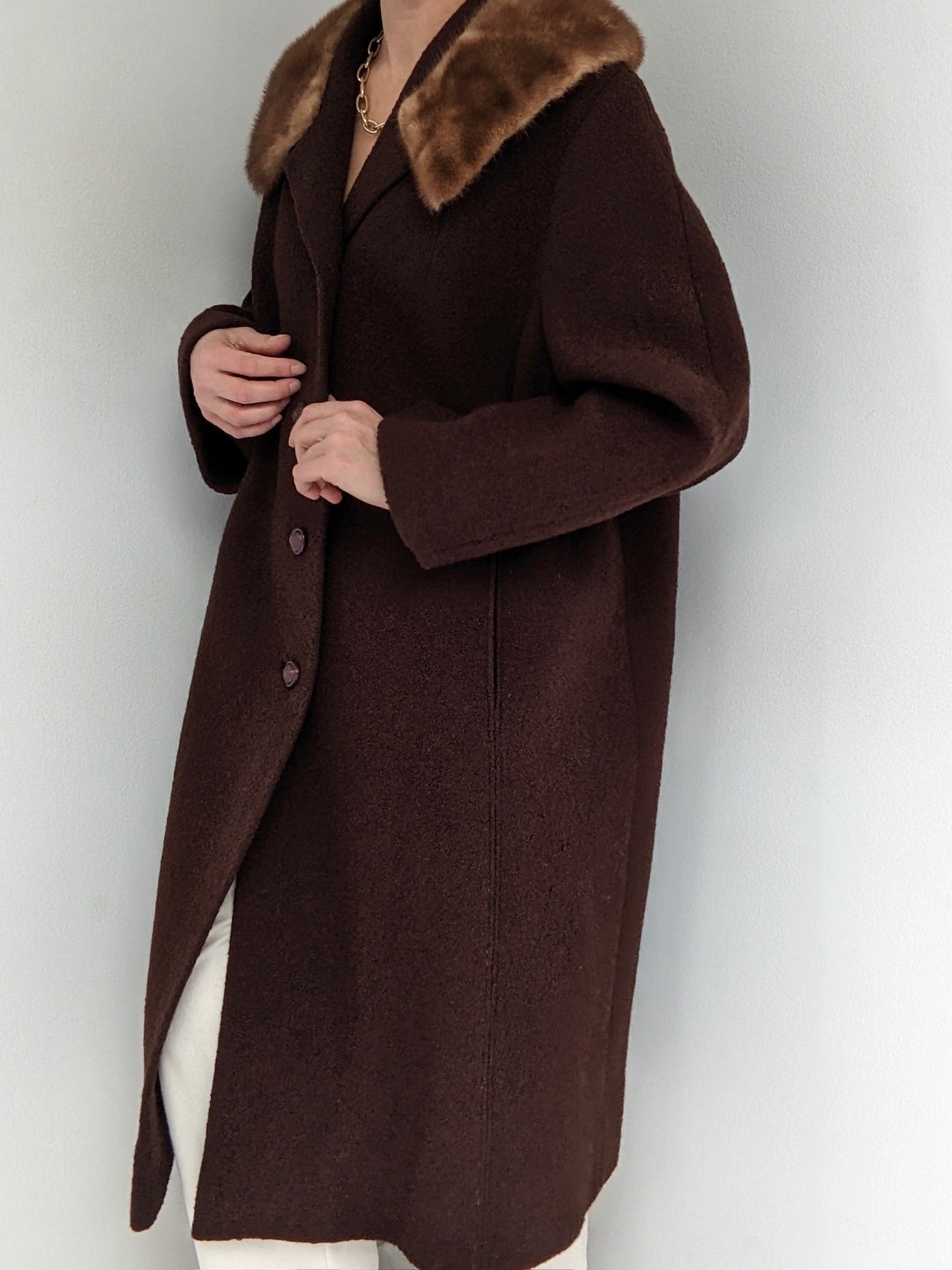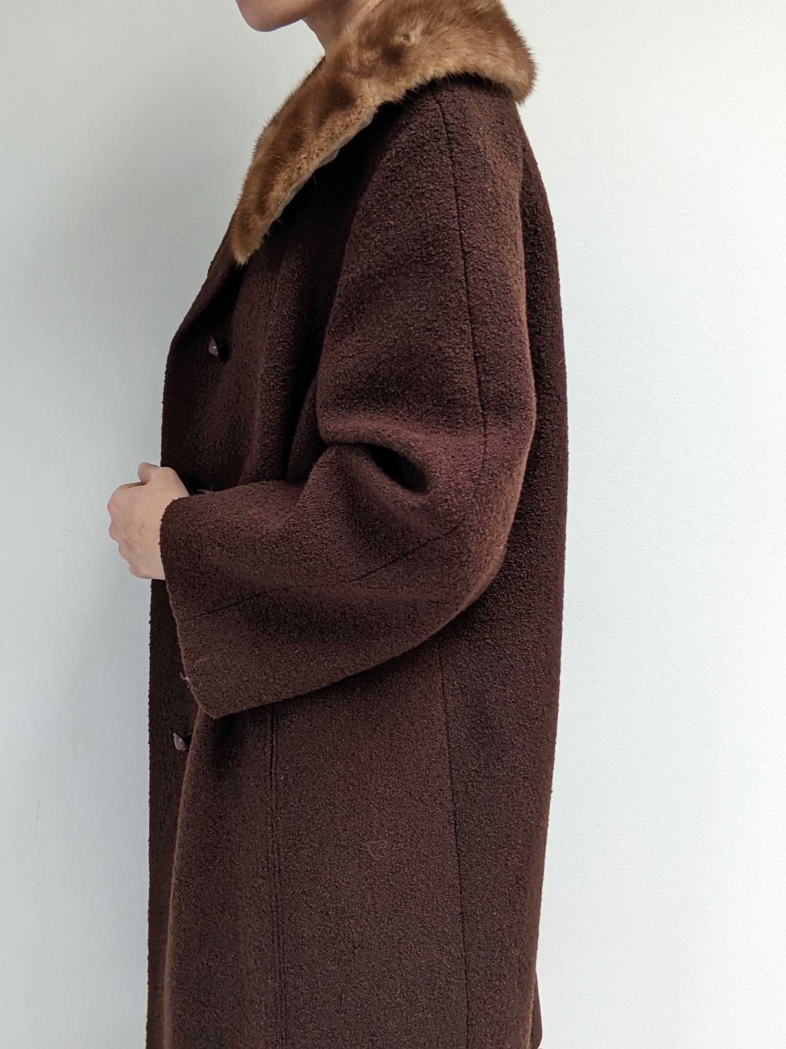 Gorgeous Vintage Chocolate Bouclé Wool & Fur Coat