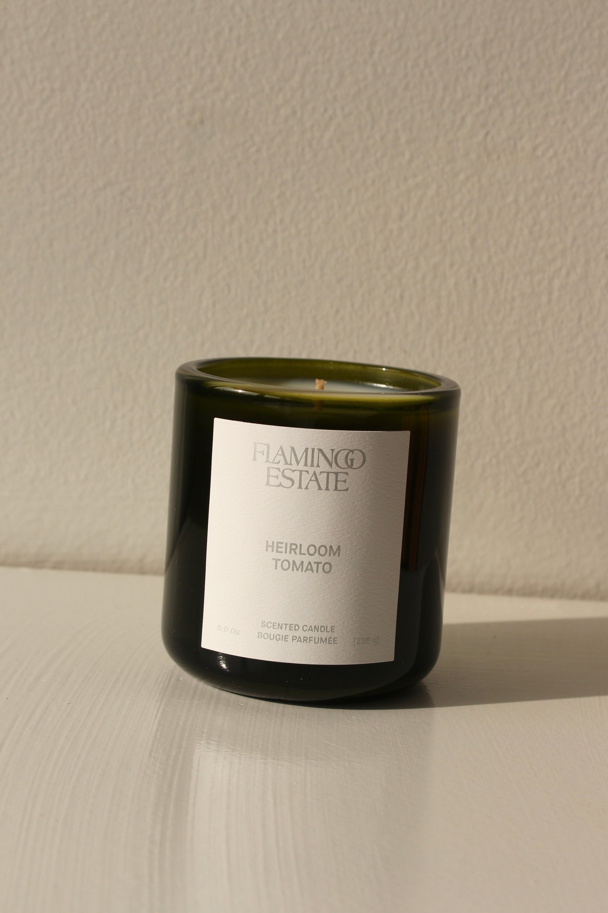 Flamingo Estate's most beloved scent, the Heirloom Tomato Candle captures the supple, green essence of balmy summer nights in the garden. Think ripe Tomatoes hanging heavy from freshly watered vines, their leaves at their most fragrant. This Candle releases an intoxicating aroma of herbaceous, peppery earth evoking a wildly nostalgic Summer feeling that lingers long after the flame is out.