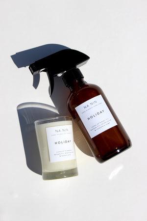 The Holiday Home Spray is made with a beautiful blend of frasier fir, blue spruce, and  forest pine. A perfect scent to bring warmth and brightness to your home during the fall and winter months.