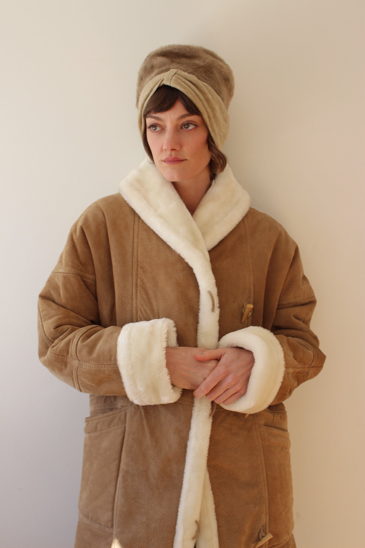 Incredible Vintage Faux Fur-Lined Suede Coat