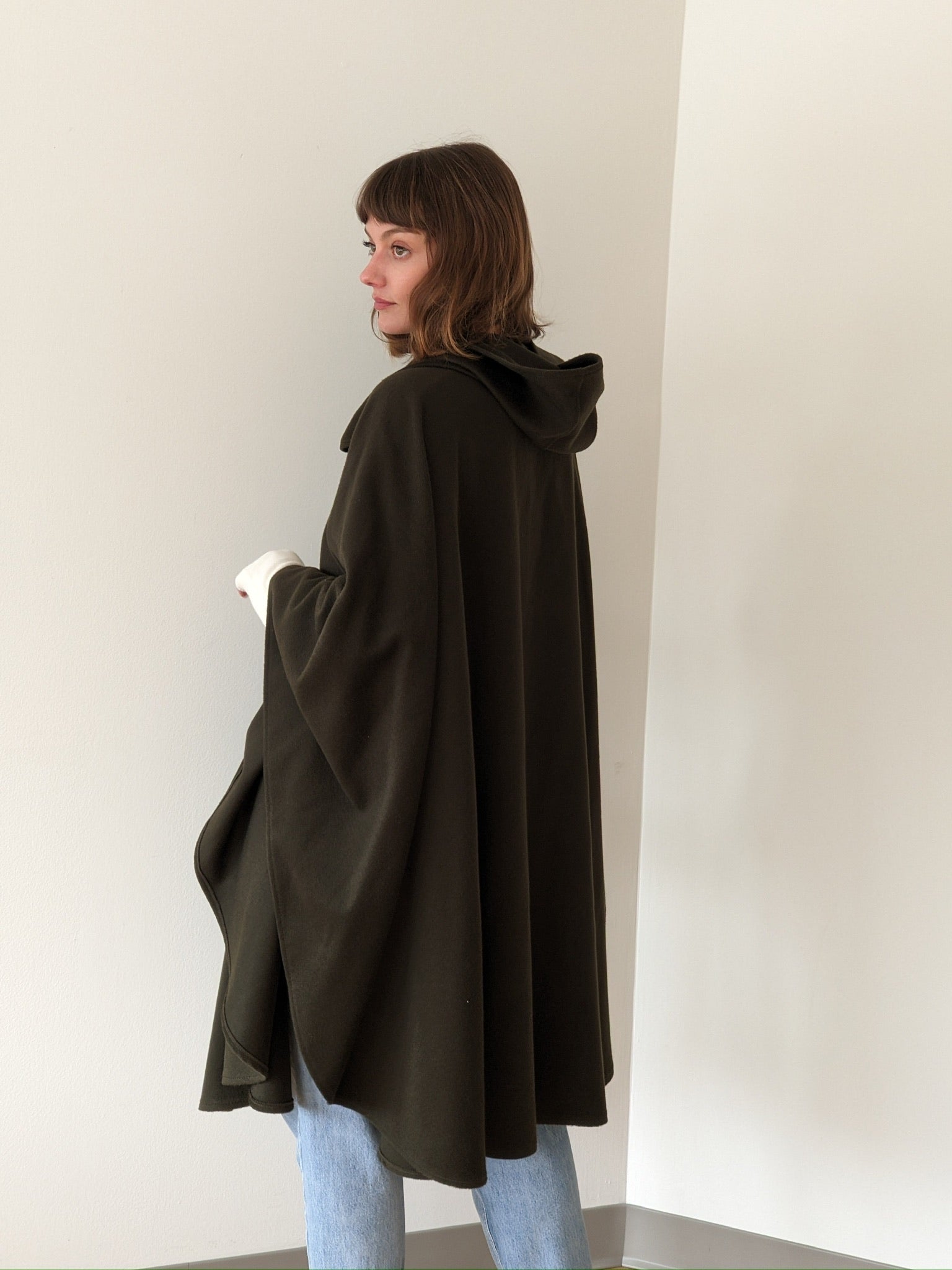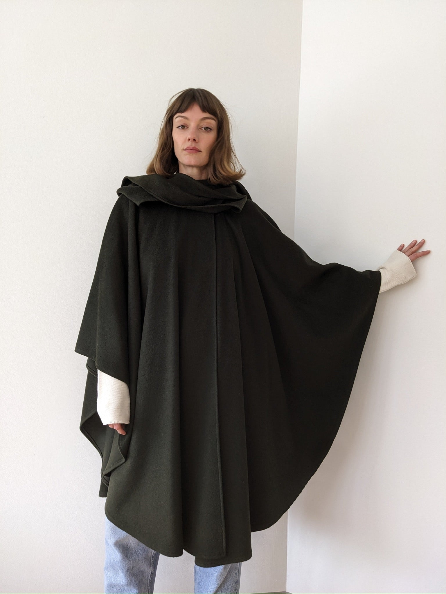 Incredible Vintage Olive Wool & Cashmere Hooded Cape