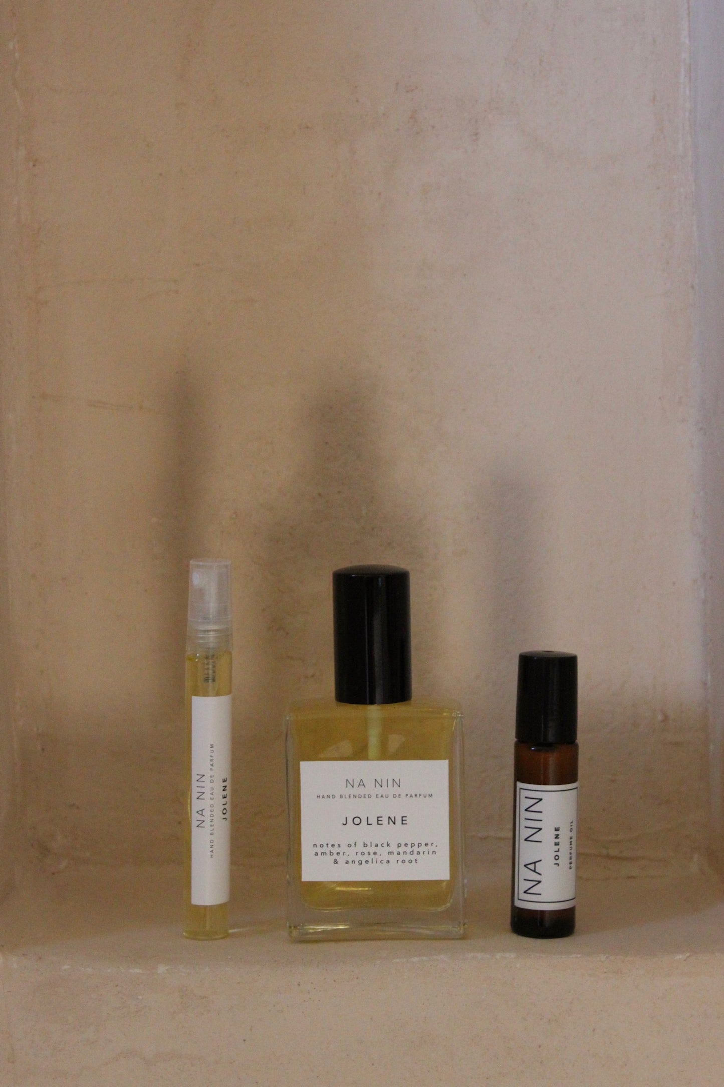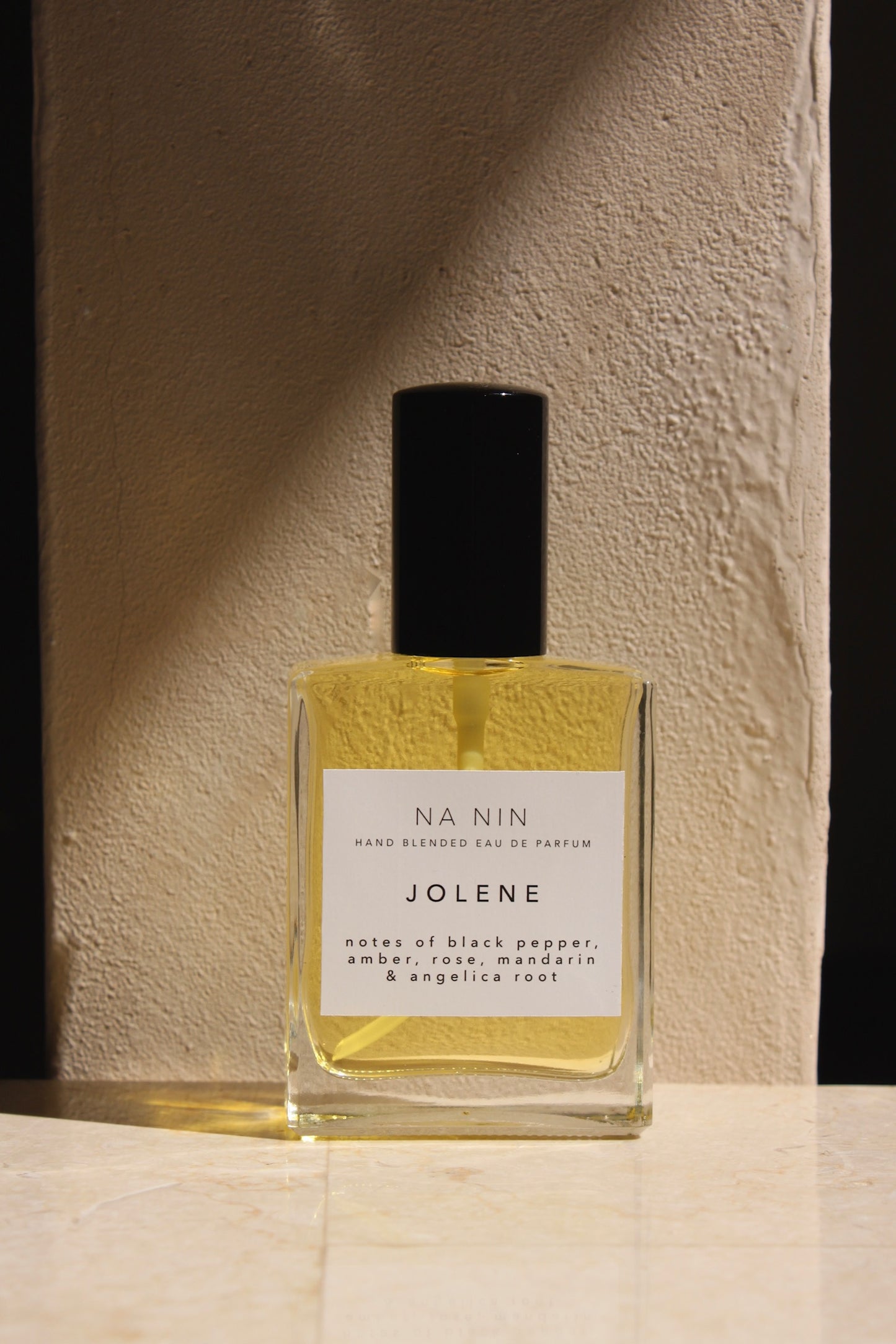 Jolene is a spicy floral scent with hints of citrus and musk. Blended notes of black pepper, angelica root, mandarin, amber and rose.