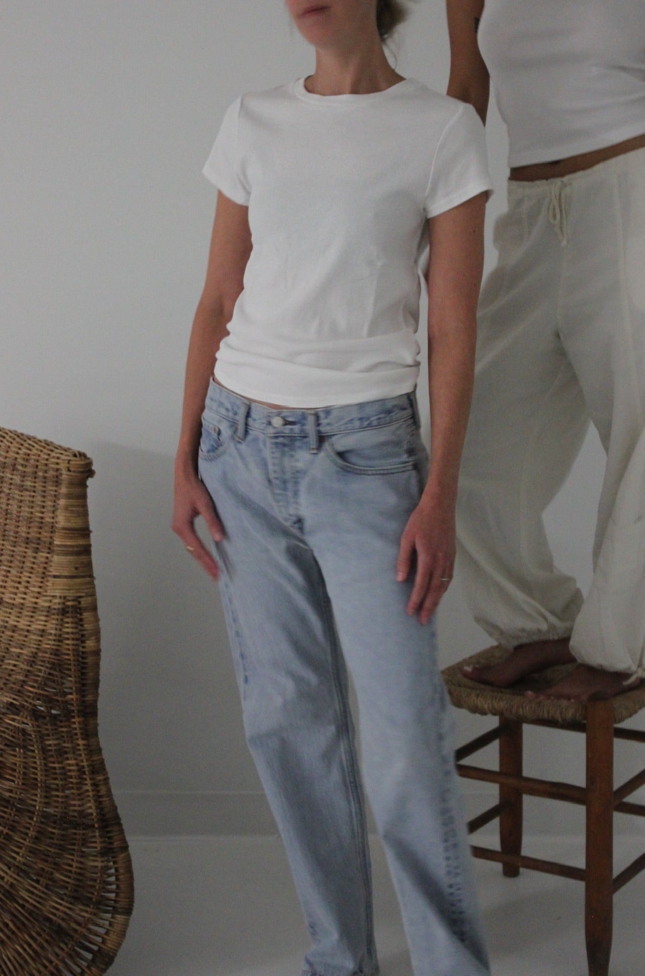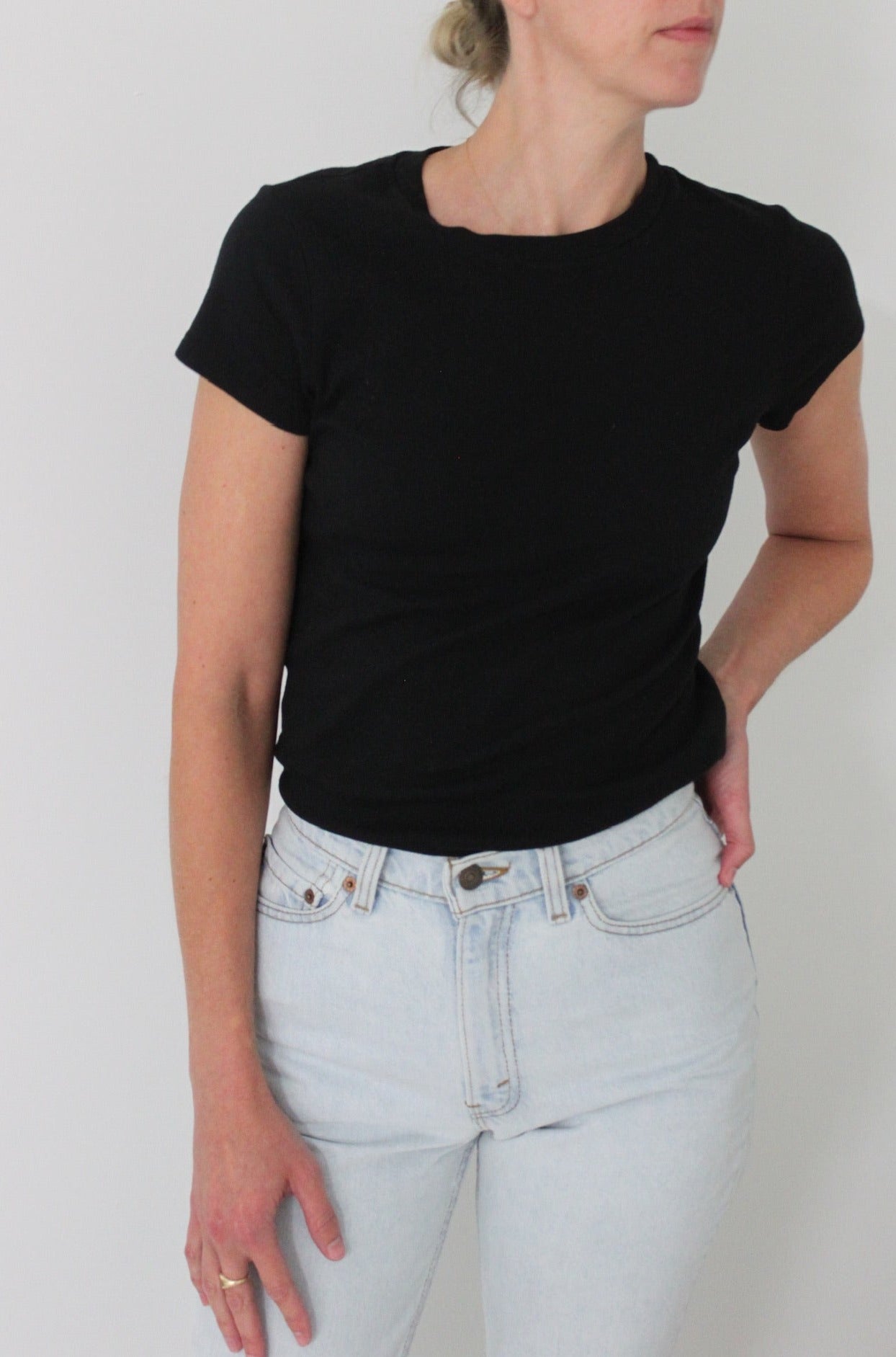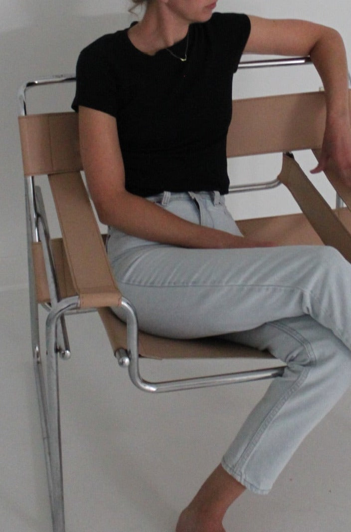 The Bebe Organic Tee from LA Relaxed offers the perfect combination of style and comfort. This shrunken crewneck tee features cap sleeves and a cropped length, creating a modern and flattering fit.