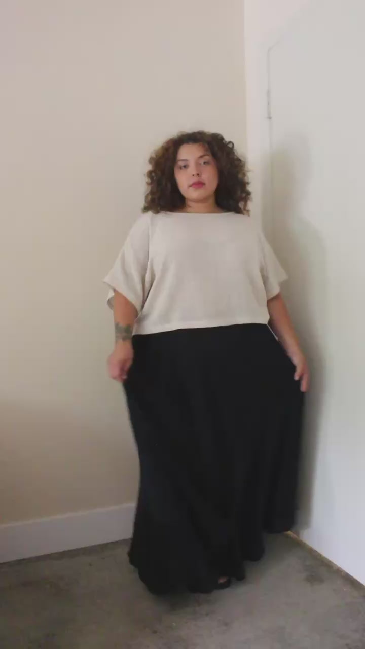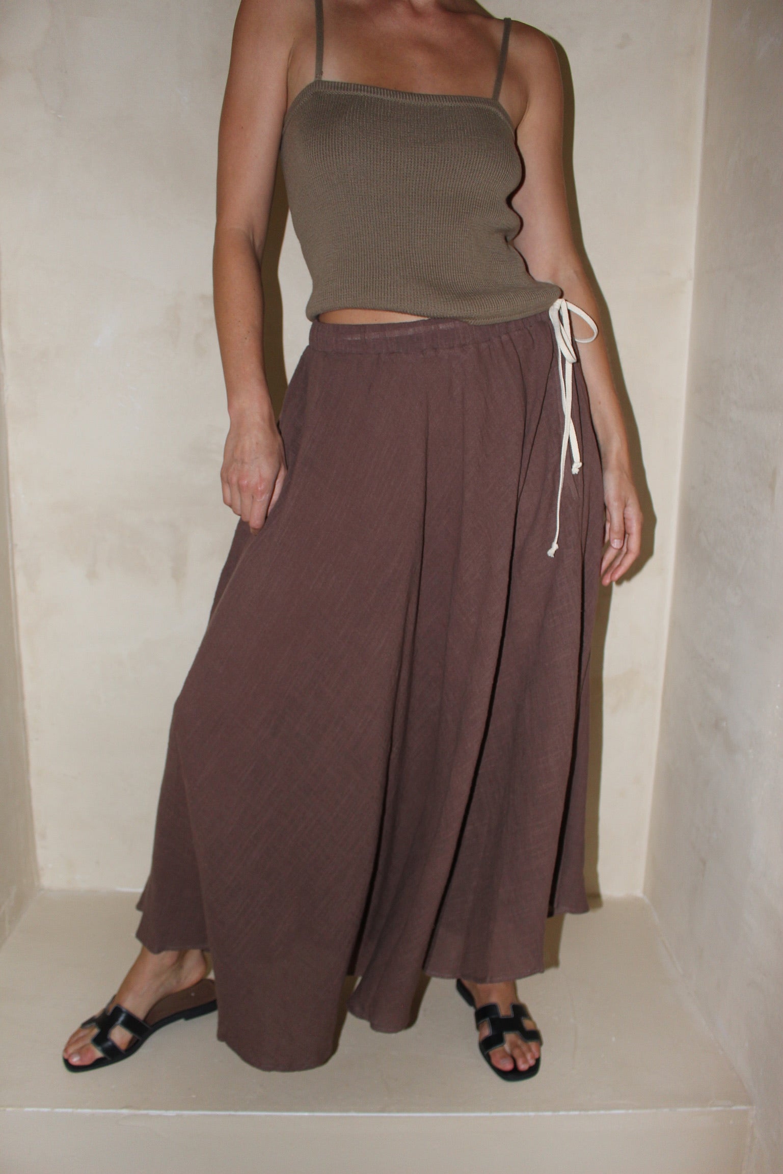 The Laurel Cotton Gauze Skirt is made from exceptionally soft cotton gauze, presenting a relaxed yet elegant shape with a light, breathable feel. This adaptable skirt is an essential piece for seamless styling alongside any wardrobe selection. It showcases a bias cut for a polished finish, practical side pockets, and a graceful drape, all held in place by a comfortable elastic waistband accented with a natural woven cord.