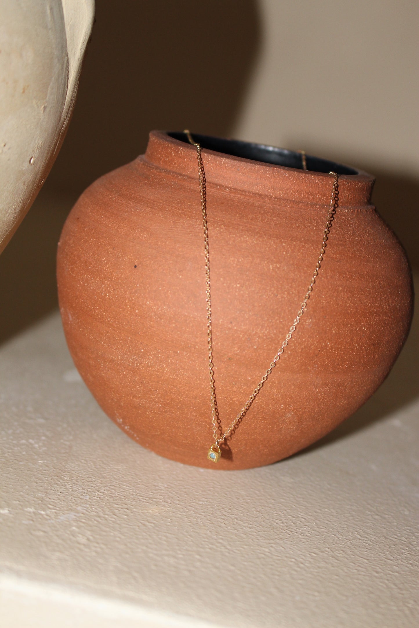 The Merewif Loner Necklace showcases an elegant square pendant adorned with a subtle opal stone. This refined piece complements both statement and timeless jewelry, creating a sophisticated layered effect. Its enduring design ensures this delicate accessory remains a cherished element in your collection for years to come.