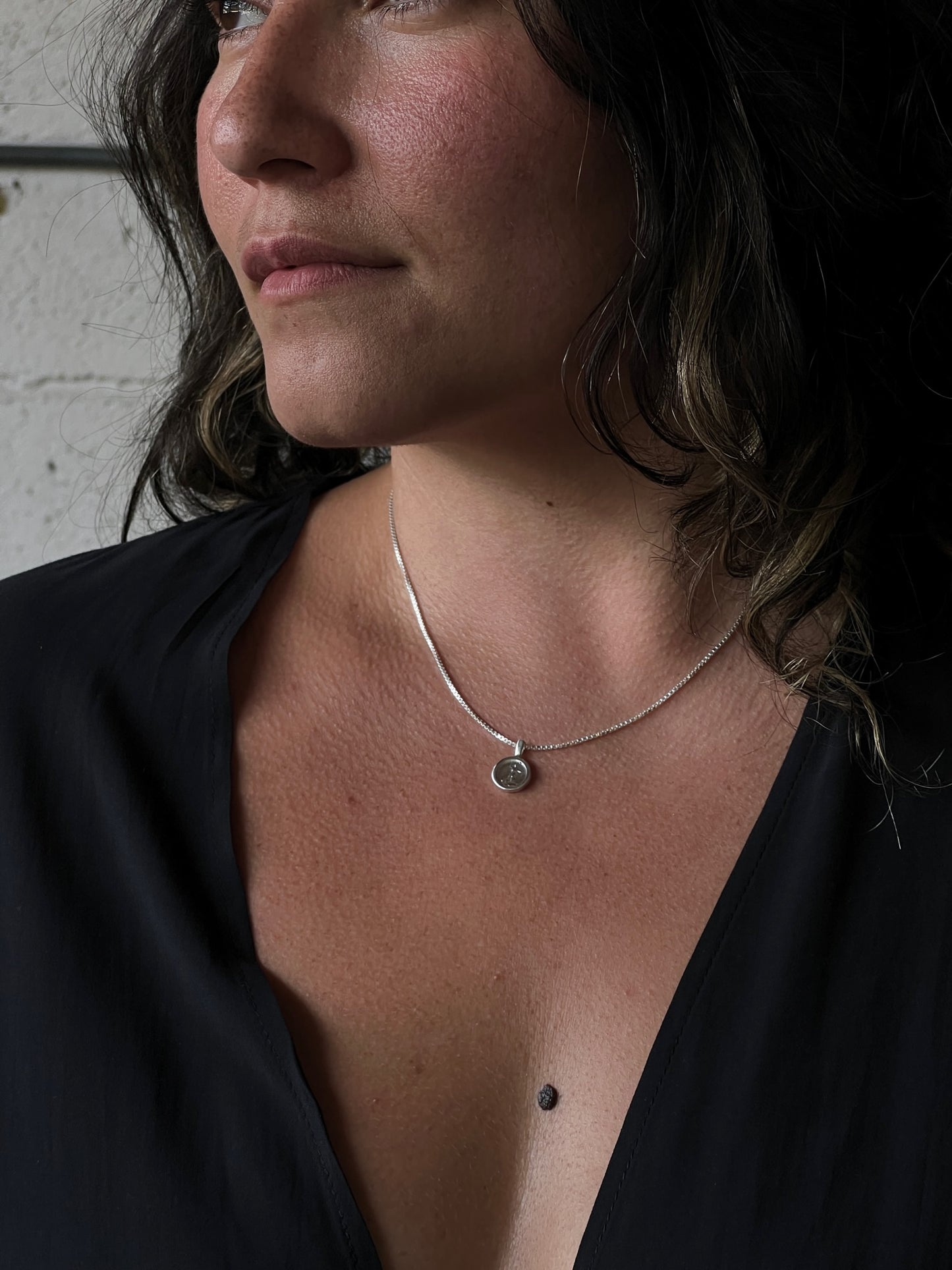 This sweet, simple necklace looks lovely by itself or layered with other favorites. The pendant is cast in brass and 14k gold plated. The frontside of pendant has imprint of Lady Liberty and text Liberty at top of pendant and back is blank. Comes on a 1.2mm 14k gold filled box chain with circle clasp closure.