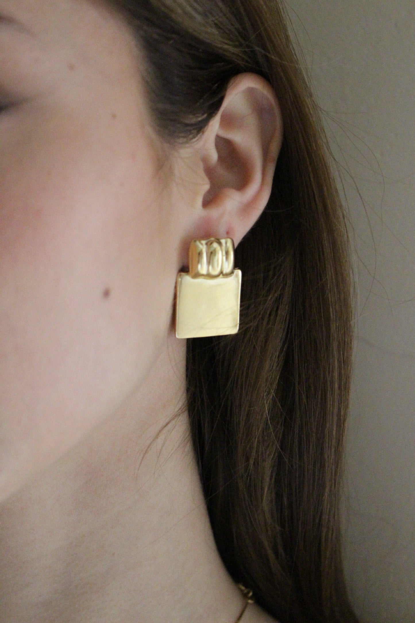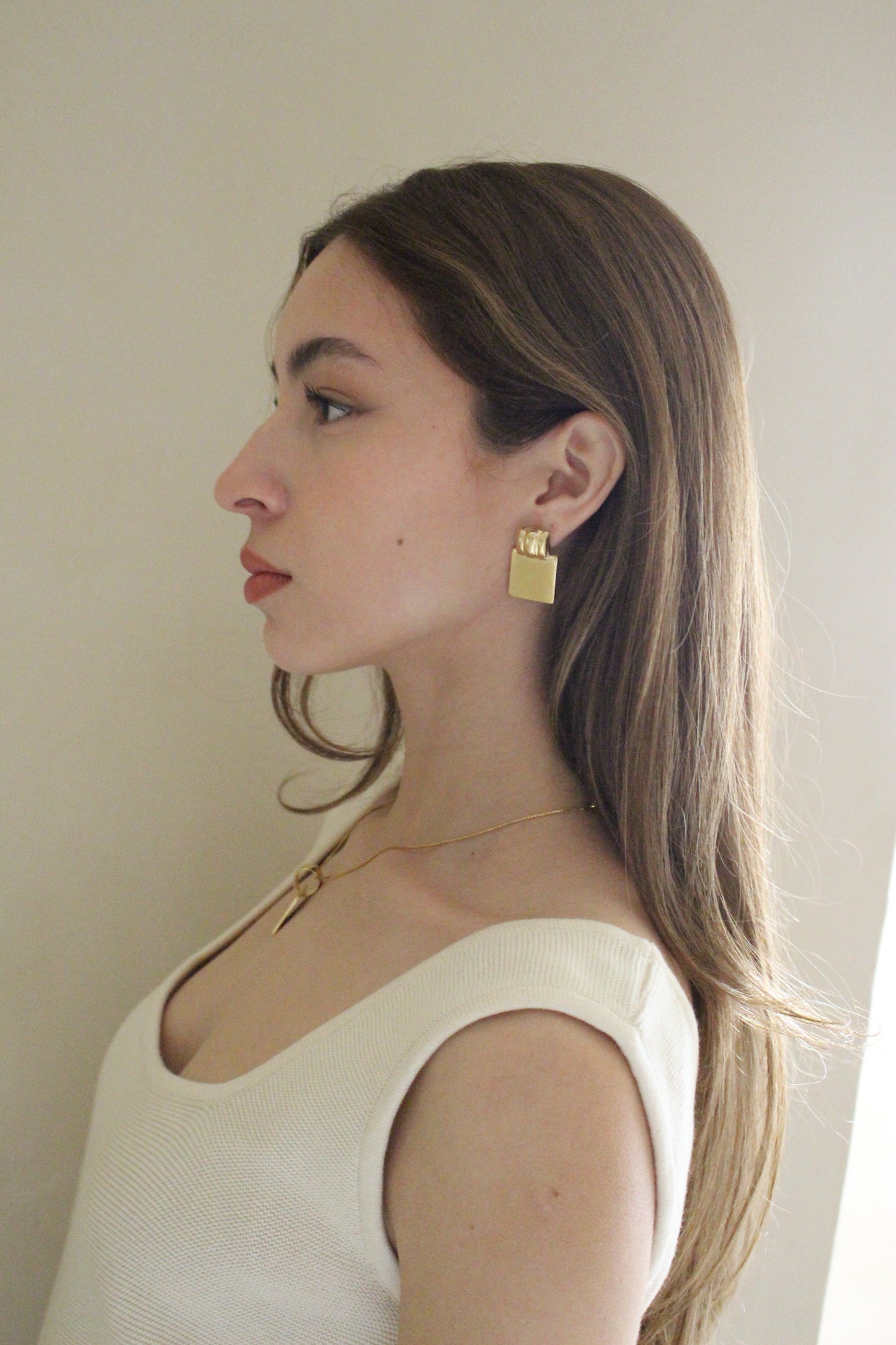 The Carmen Earrings are sophisticated statement earrings inspired by a beloved vintage piece. These distinctive adornments are cast in brass & plated in 14k yellow gold. The Carmen earrings make a perfect addition to your jewelry collection and would pair endlessly with beloved vintage classics. Pair with the Carmen Necklace to create a set of your own.